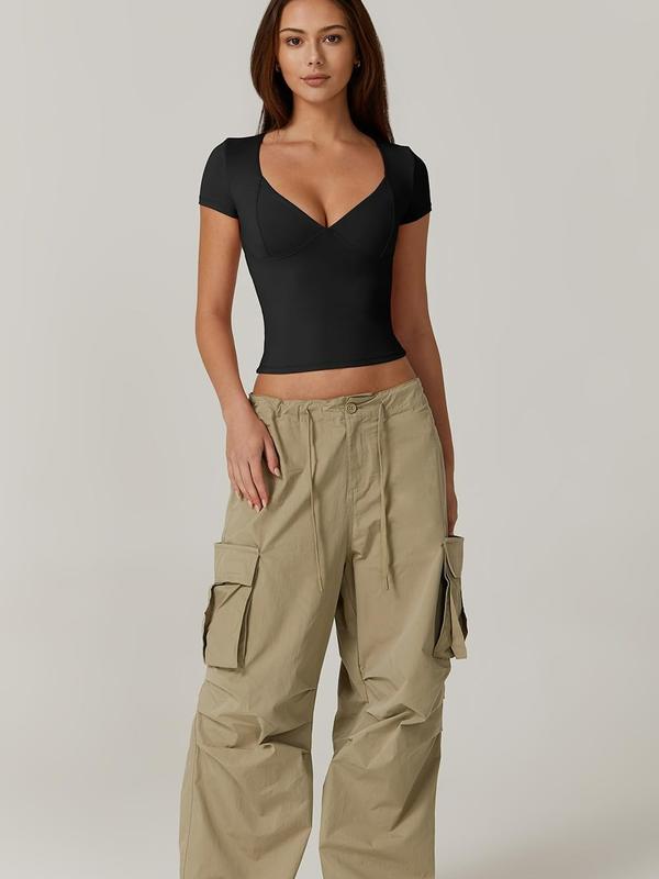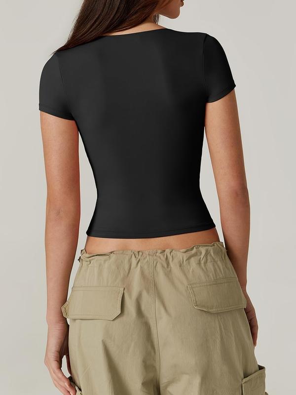 ·Feature:Tight cut to the body, this tee shirts top is framed with a sweetheart V-neckline and flattering seamed cup. It¡¯s designed in our signature buttery soft jersey fabric,with sustainably sourced Polyamide fibres and detailed amplifying the second-skin fit.The flattering cut of this slim tee shirt accentuates your curves while maintaining a comfortable fit.
