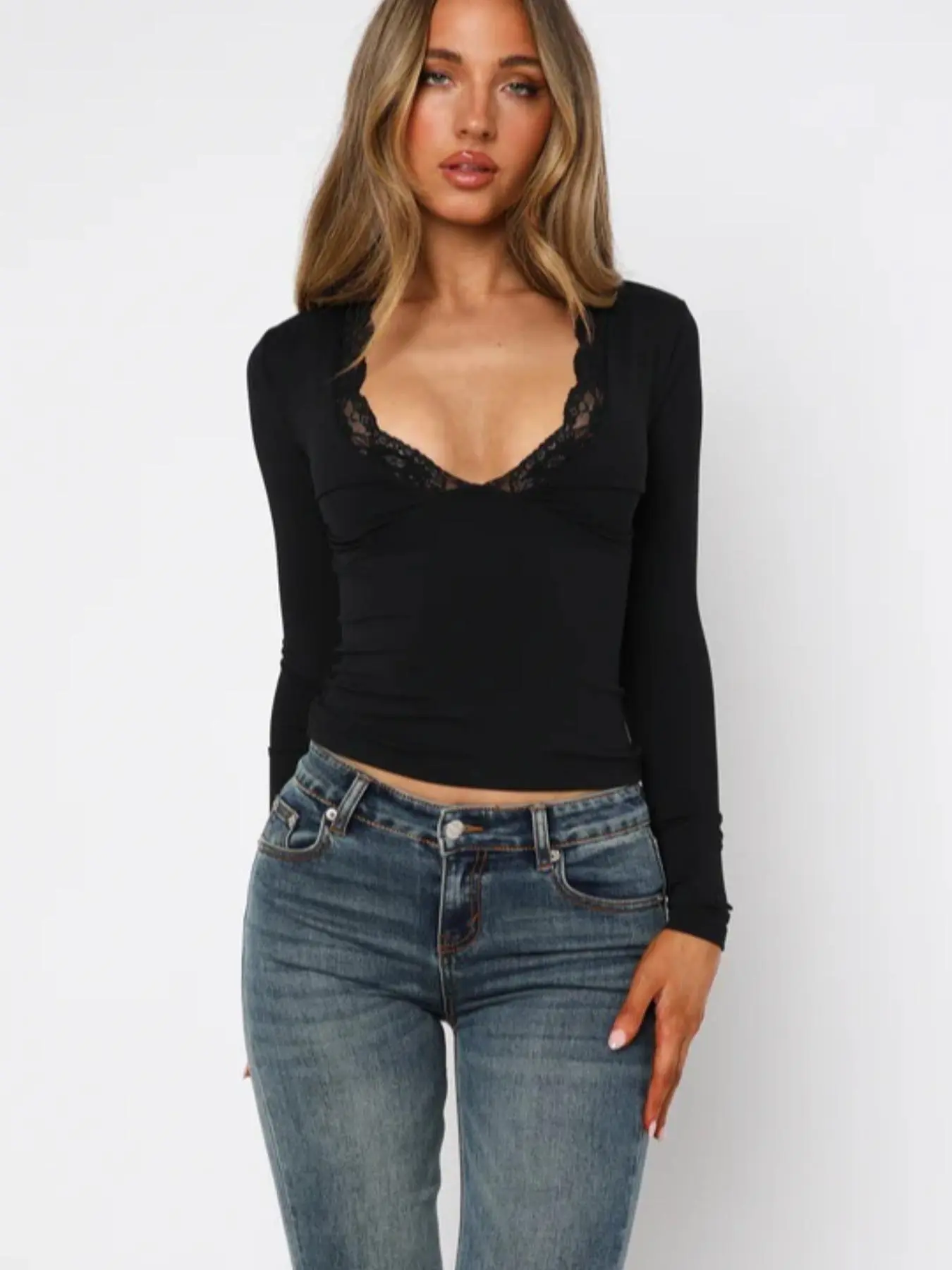 【Contrast Lace】: Intricate contrast lace detailing adds a unique charm to the piece, setting it apart from typical long sleeve tops.