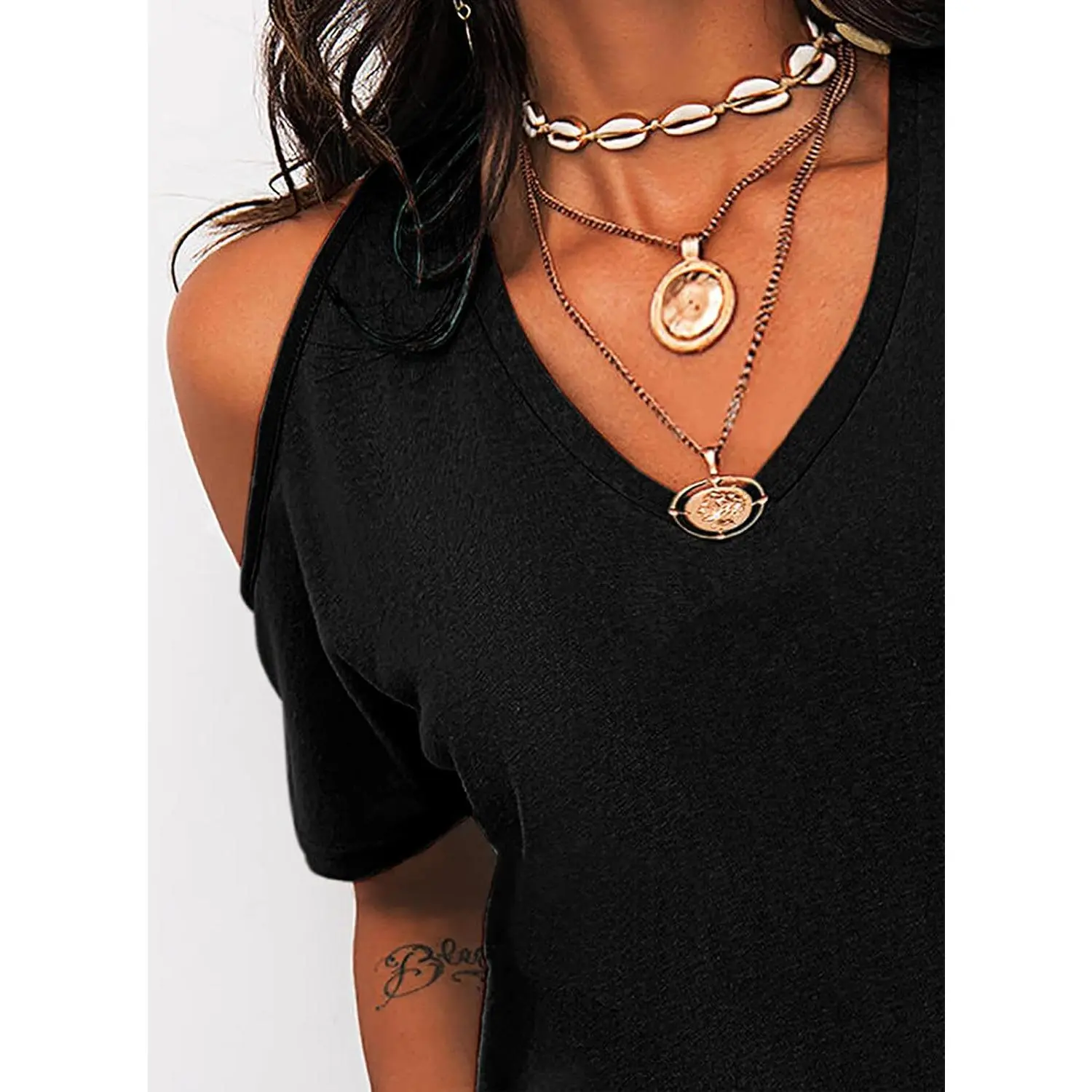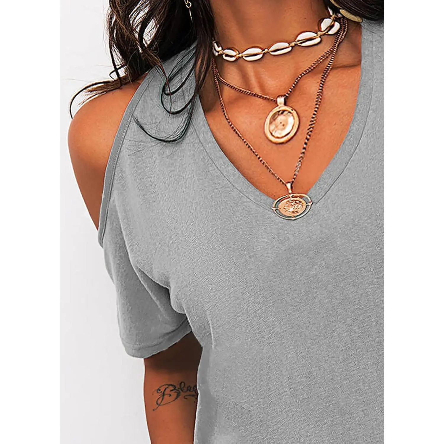 ·Features: V-neck, cold shoulder, short sleeves, solid color, casual style, loose fit, sexy blouse shirt