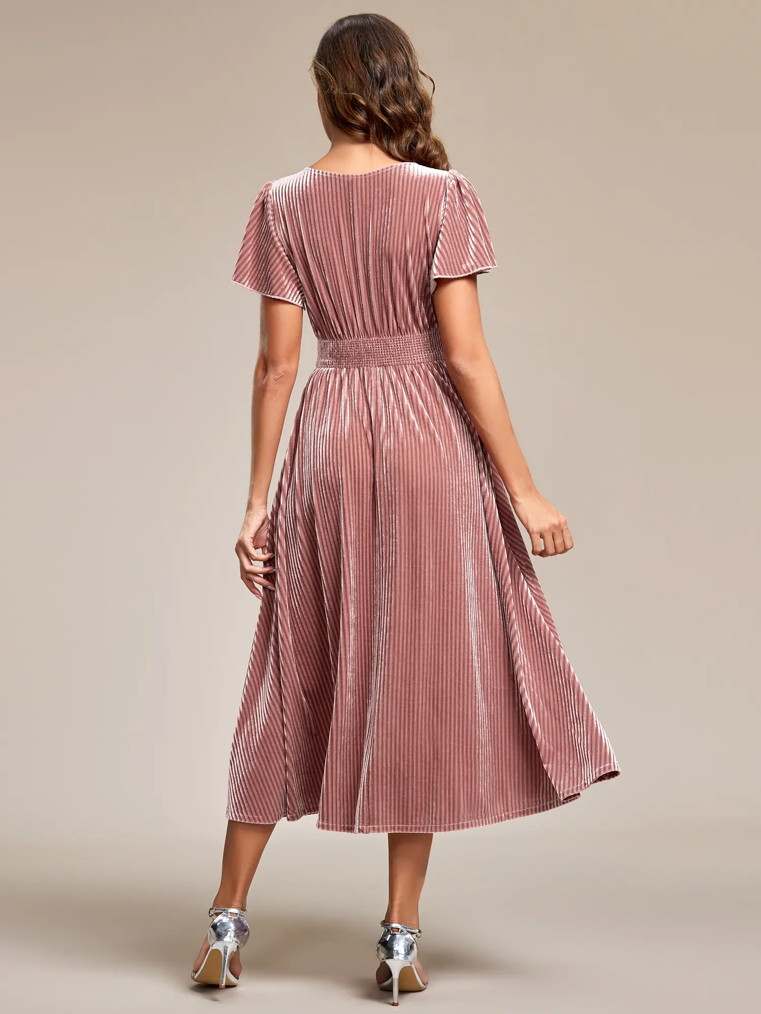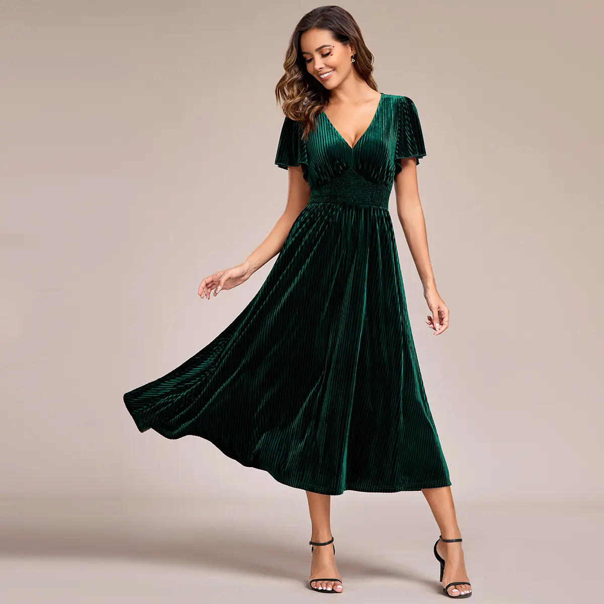 Elevate your elegance with the Ever-Pretty Graceful V-Neck Velvet Midi Wedding Guest Dress. This chic and stylish midi dress is perfect for bridesmaids, offering a chic and sophisticated look for any special occasion.