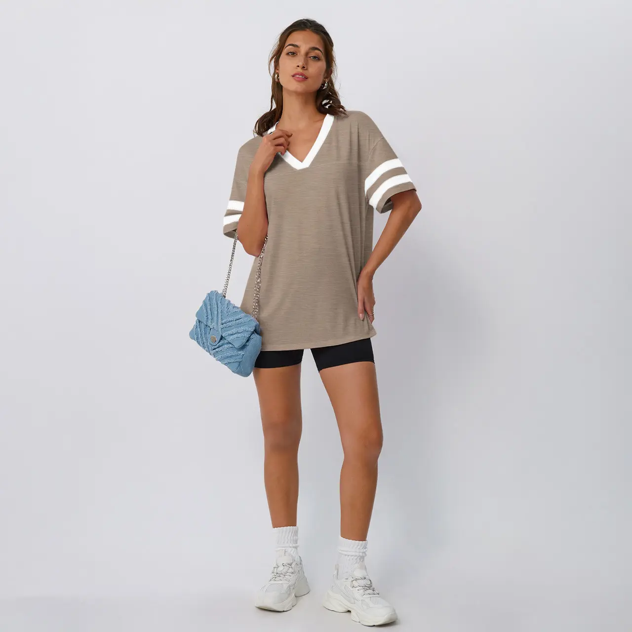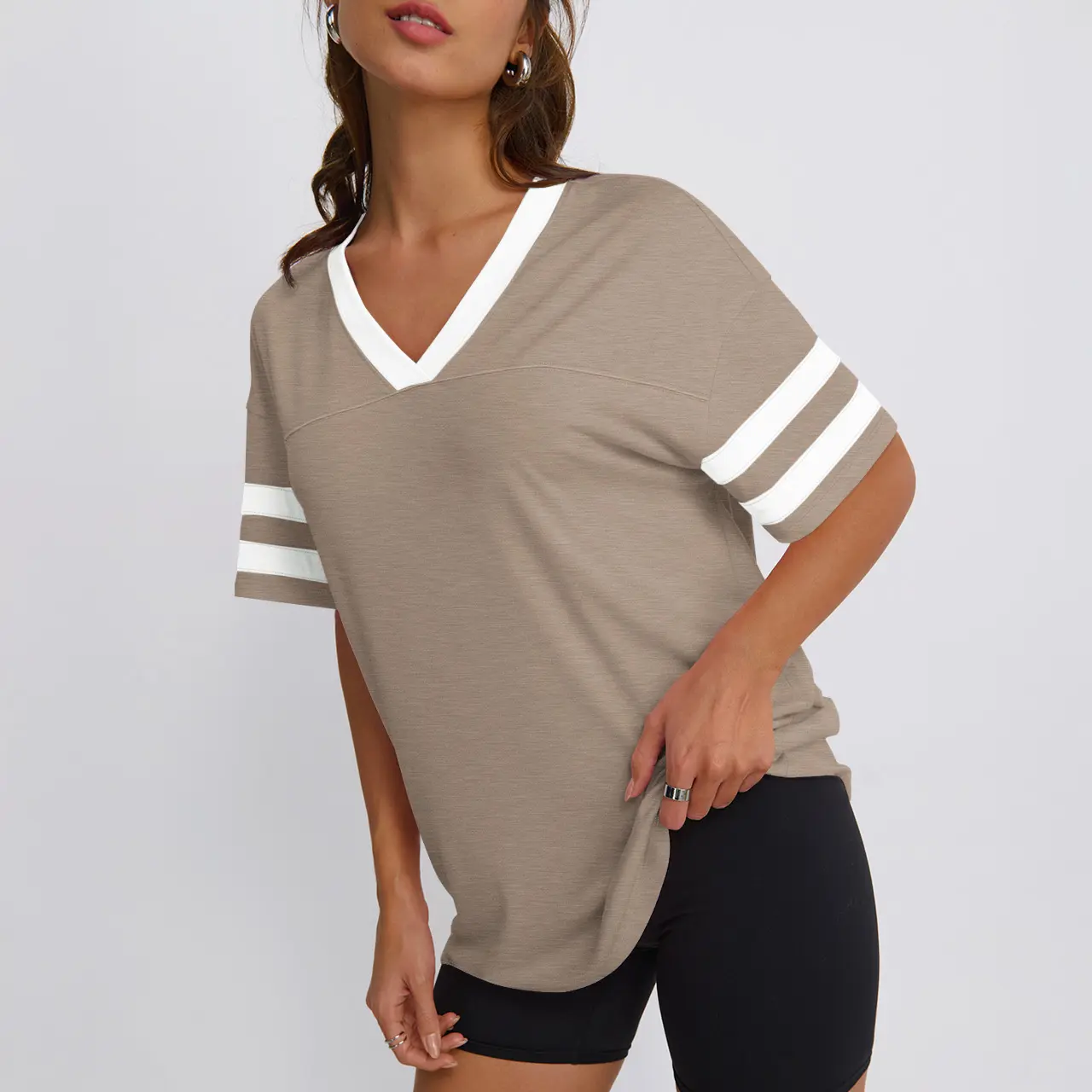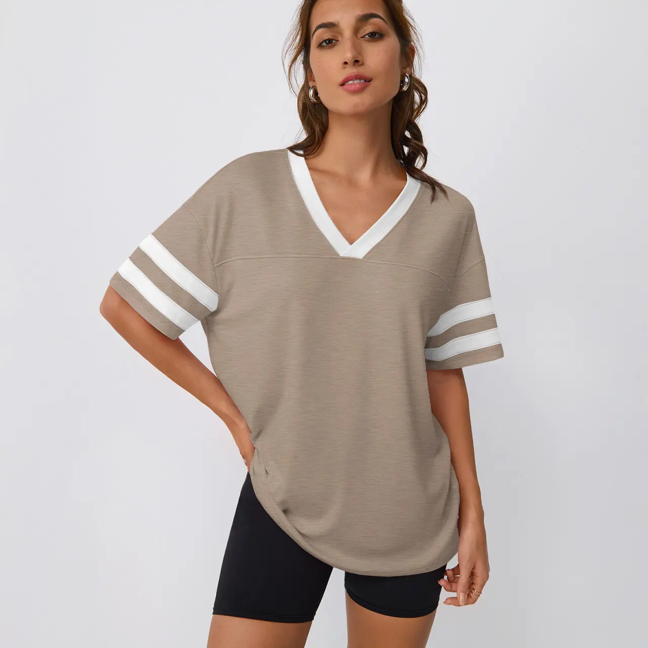 5. Trendy Queen Womens V-Neck Workout T Shirts Casual Loost Fit Y2K Tops Trendy Clothes 2025