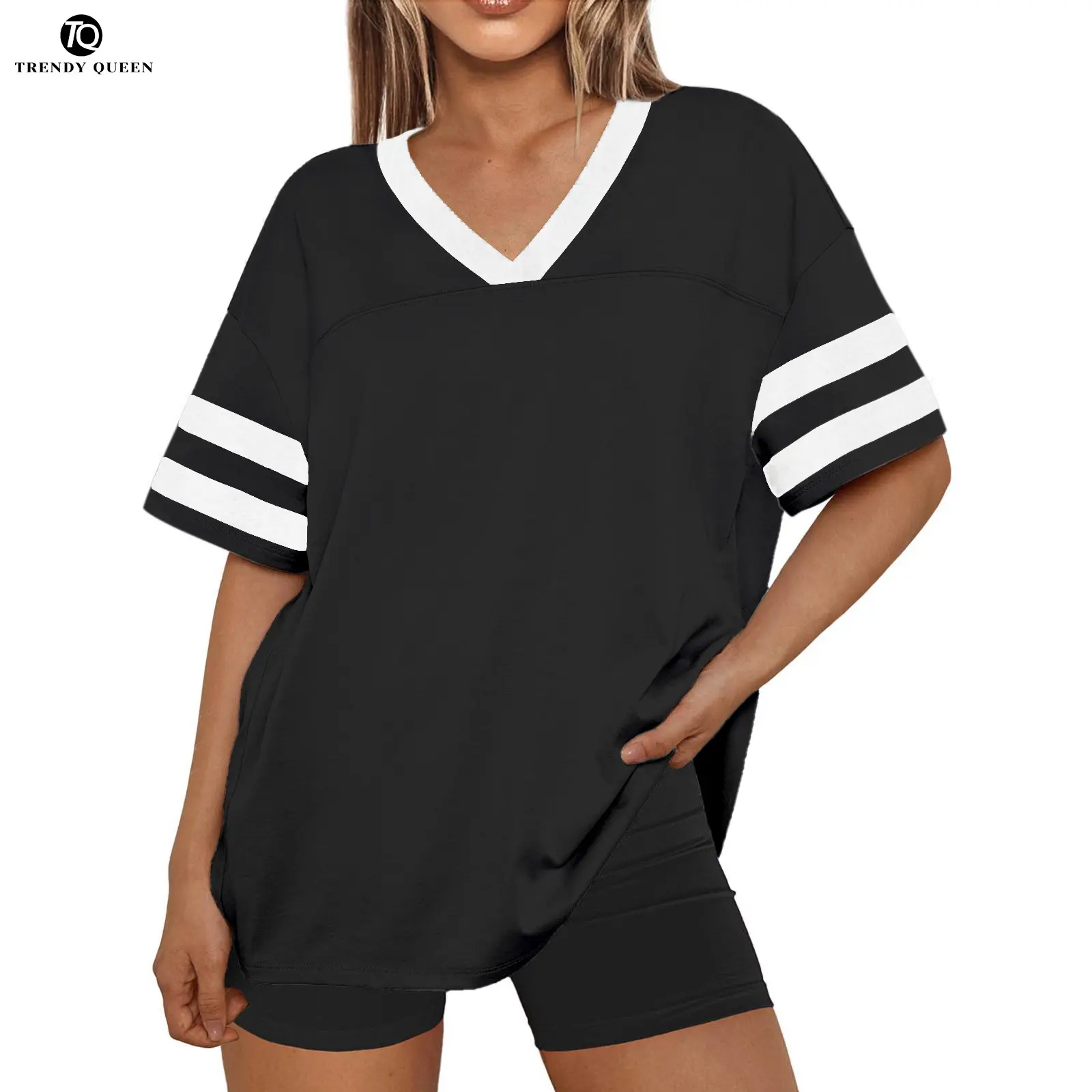 Trendy Queen Womens V-Neck Workout T Shirts Casual Loost Fit Y2K Tops Trendy Clothes 2025