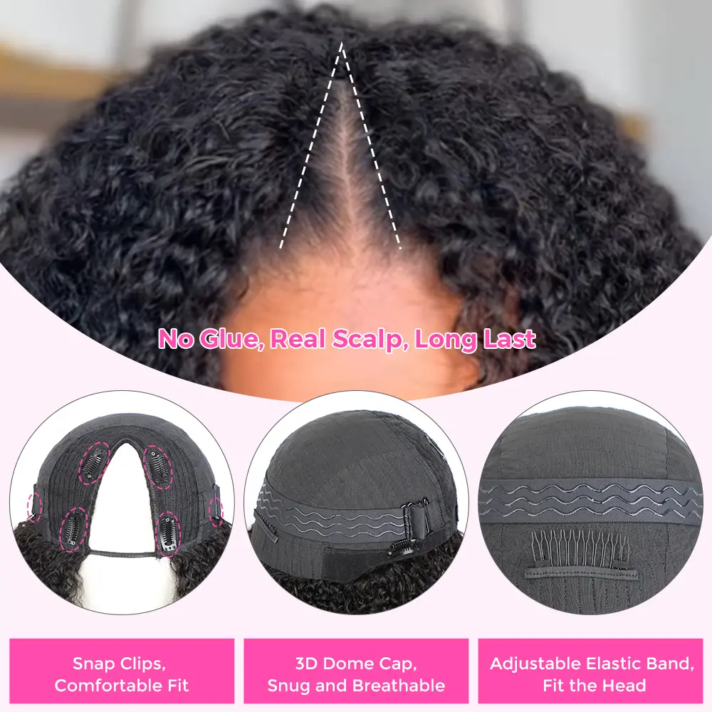 Nice density, poppin curls, and true to length. Recommend wetting and brushing it on the daily to help the curls not get matted. There is an adjustable band in the back and clips along the part to ensure the wig is secure.