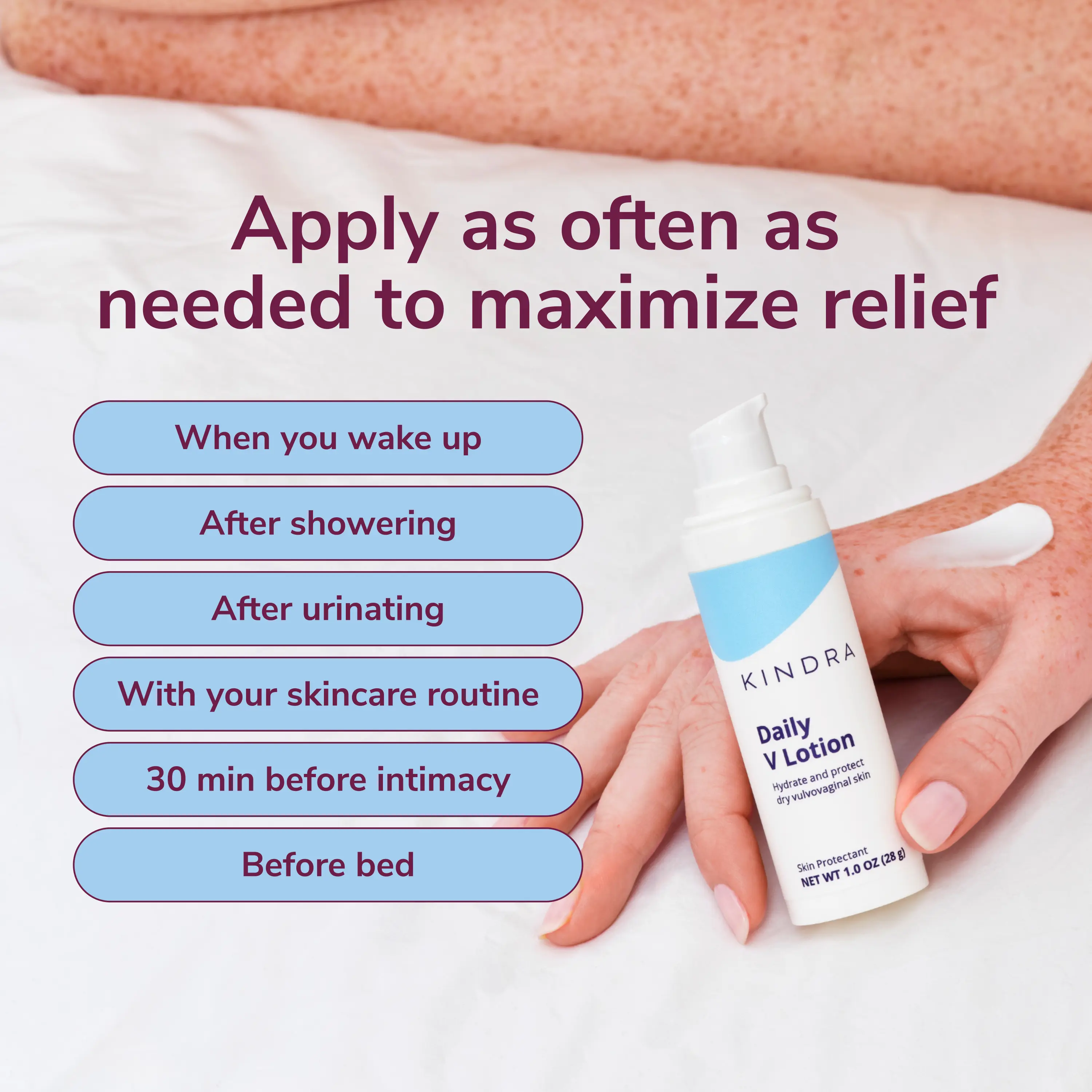 All-day comfort, every day: Use the Daily V Lotion anytime dryness or irritation strikes—after the shower, workout intimacy, or AM/PM. Then, let Soothe pamper you in the bath or shower for hydrated, happy skin all over.