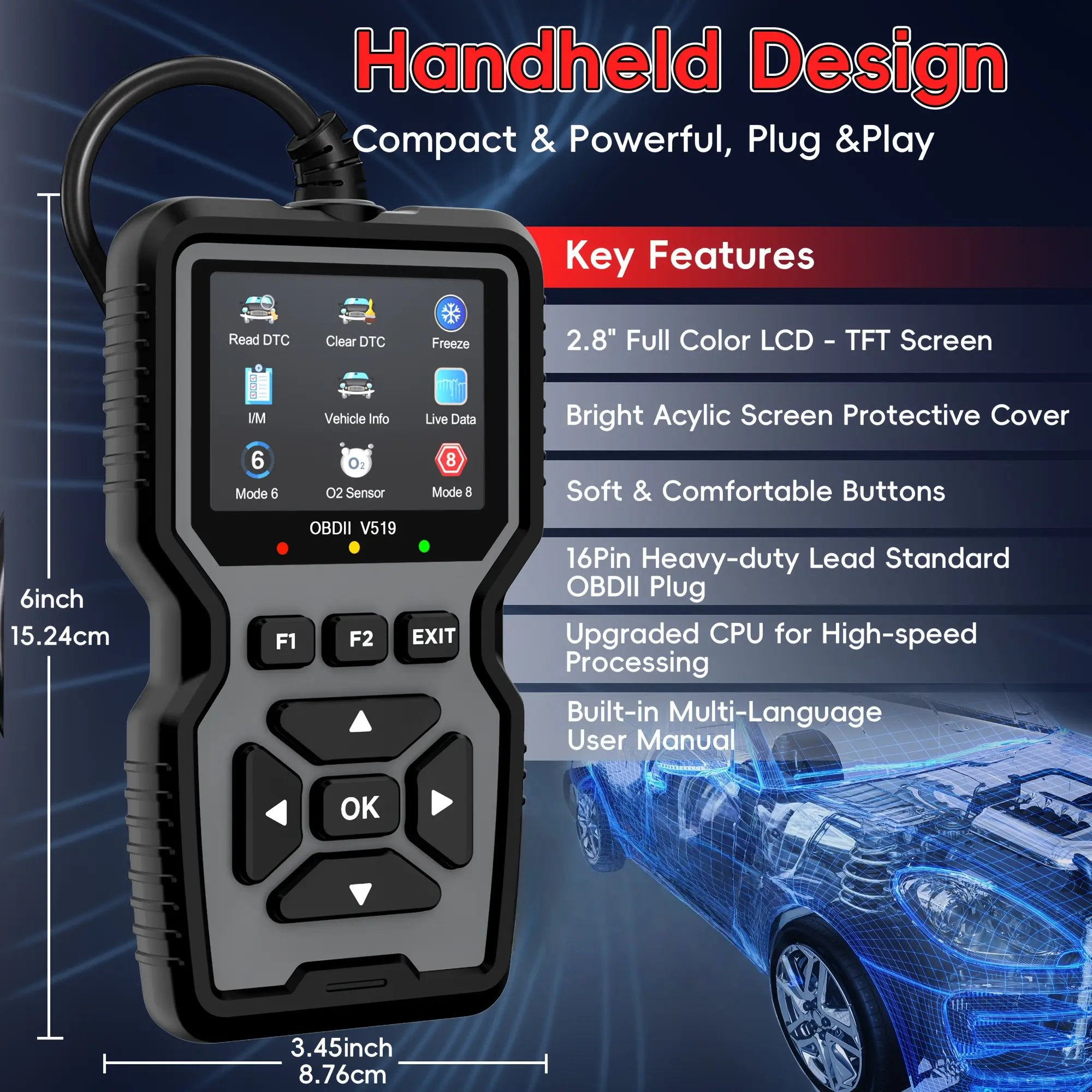 V519 New OBD2 Car Scanner Diagnostic Tool Code Reader, Car Voltage Tester, Engine Fault Code Scanner, Diagnostic Tool, Compatible with OBDII Protocol Vehicles.