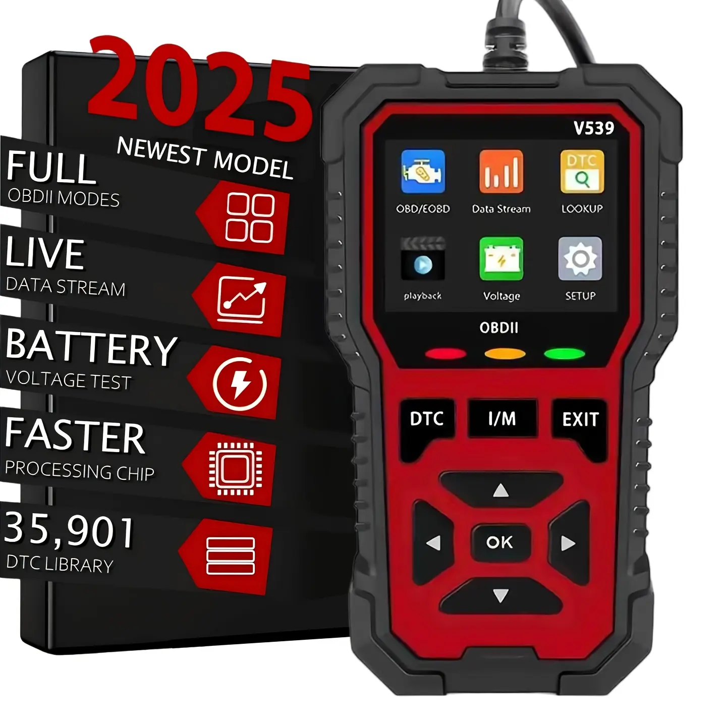 2025 Upgraded V539 OBD2 Scanner Full Functions Engine Code Reader Reset Mode 6 Mode 8 for All OBD2 EOBD Cars 1996 and Newer IM Readiness Check Battery Voltage Test Code Read Erase No Battery Needed