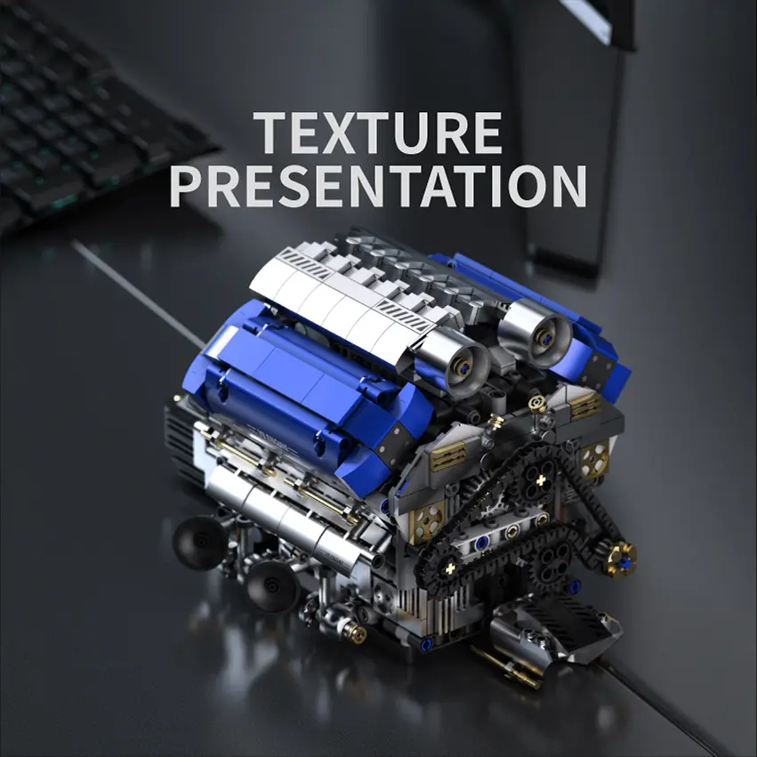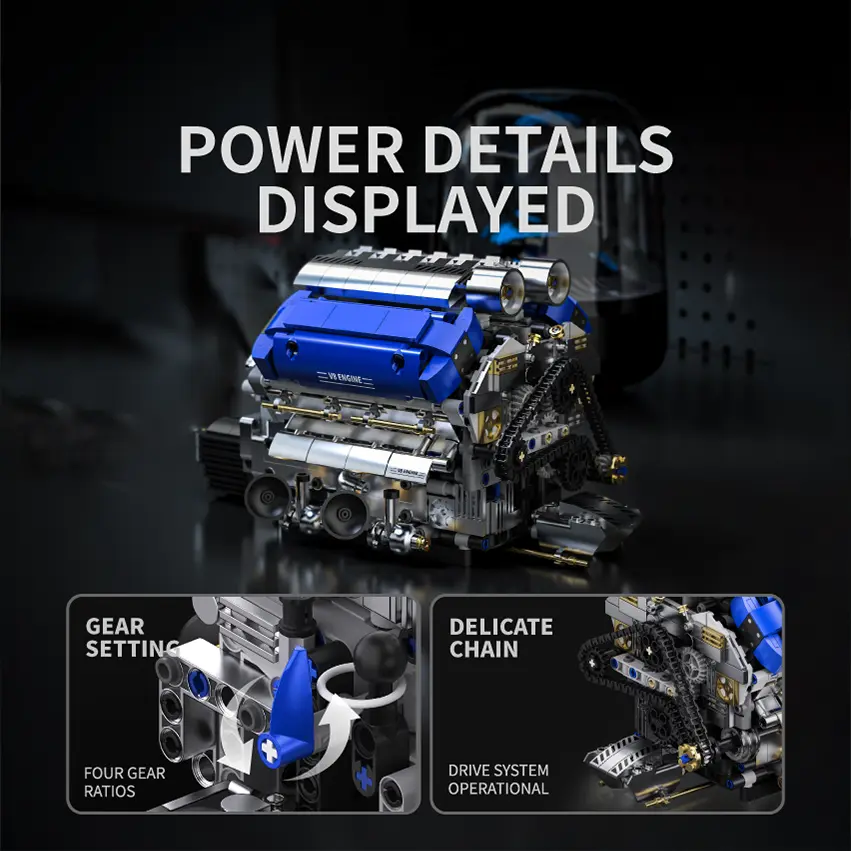 This motorized visible engine building set is perfect for car enthusiasts and adults. It features a mechanical chain and cylinder linkage structure. Ideal for STEM learning, this construction toy is a great holiday or birthday gift. Dive into the world of mechanics with this engaging kit.