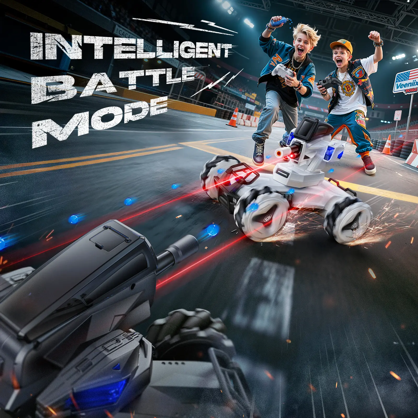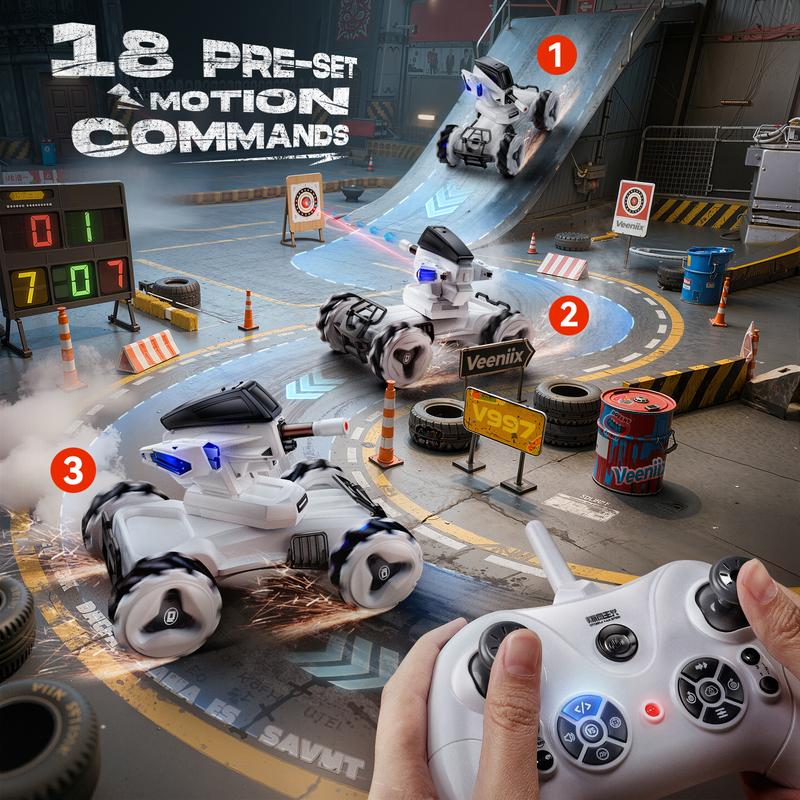 ·Precision Aiming with Infrared Intelligence: V997 Battle Car's infrared smart targeting sensor, nestled beneath the shooting turret. Precision meets excitement as it detects targets within a 1.5-meter radius, ±45% in both vertical and horizontal planes. It's not just about shooting – it's about precision, strategy, and mastering the art of battle.