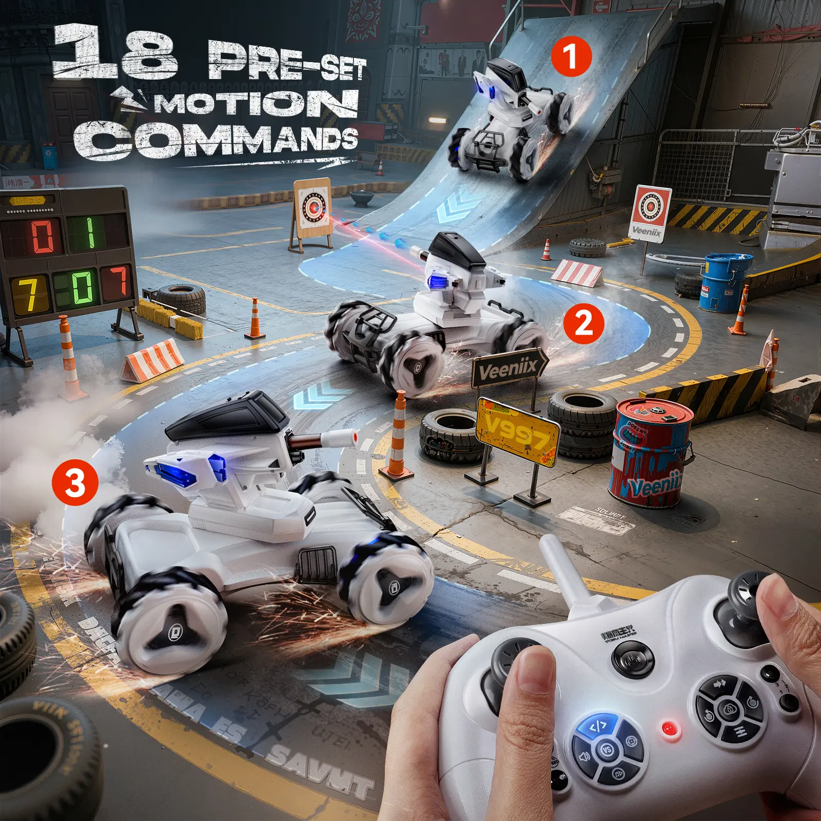 ·Unleash your kids coding creativity: Unleash your child's inner inventor with the V997 STORM MASTER, which supports 18 action command languages! Press the key to start coding, each action key represents an action language programming session.The V997 RC Car can be programmed with up to 60 action languages. Watch it come to life as it performs kids digital dance - a symphony of technology and imagination!