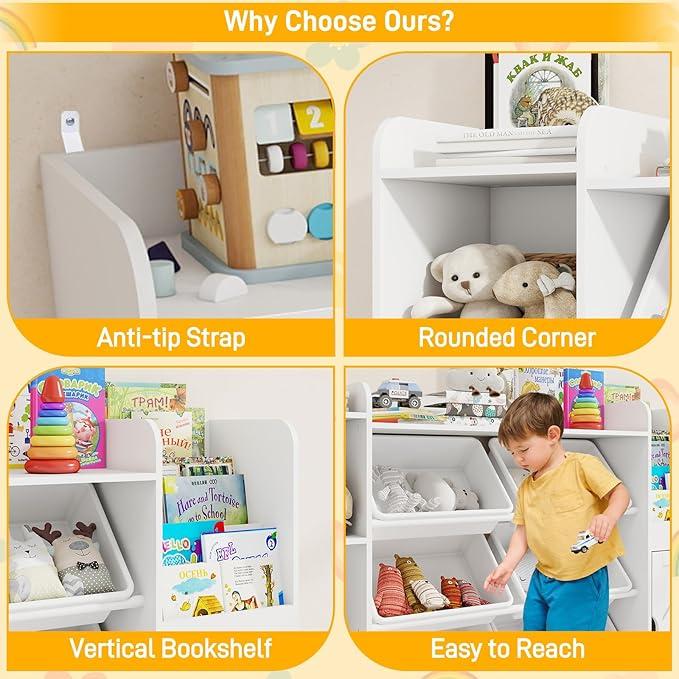 Designed with safety in mind, our cabinet features anti-tip security, rounded corners to prevent injuries, and a child-friendly height for easy access. The built-in bookshelf keeps items organized and encourages children to interact with their environment safely.