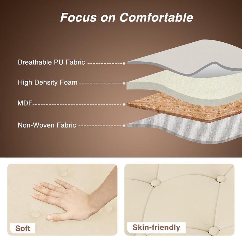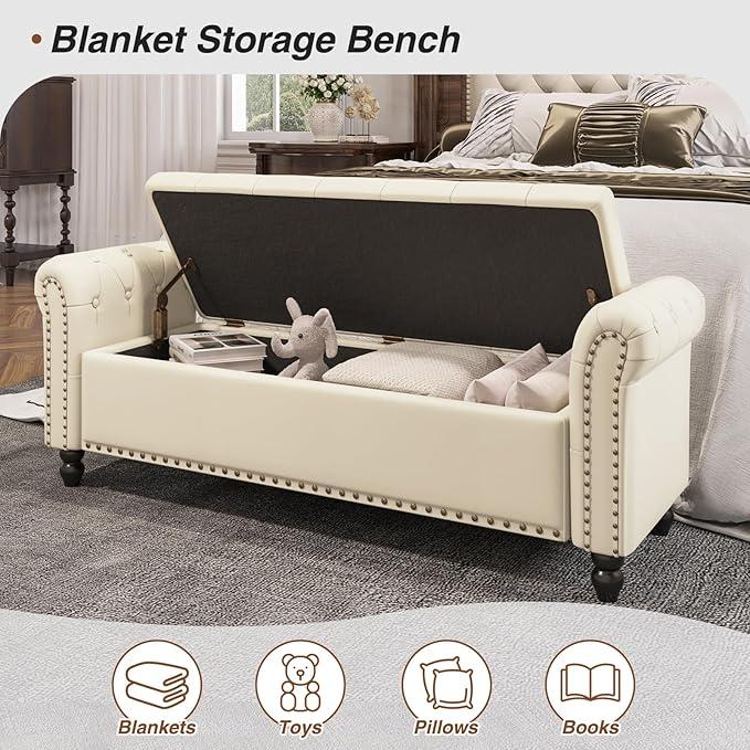 Vabches Bedroom Bench, End of Bed Bench with Storage, Bed Benches for Foot of Bed, Faux Leather Window Bench with Rolled Arms, Upholstered Storage Bench with Tufted Button and Nailhead Trim