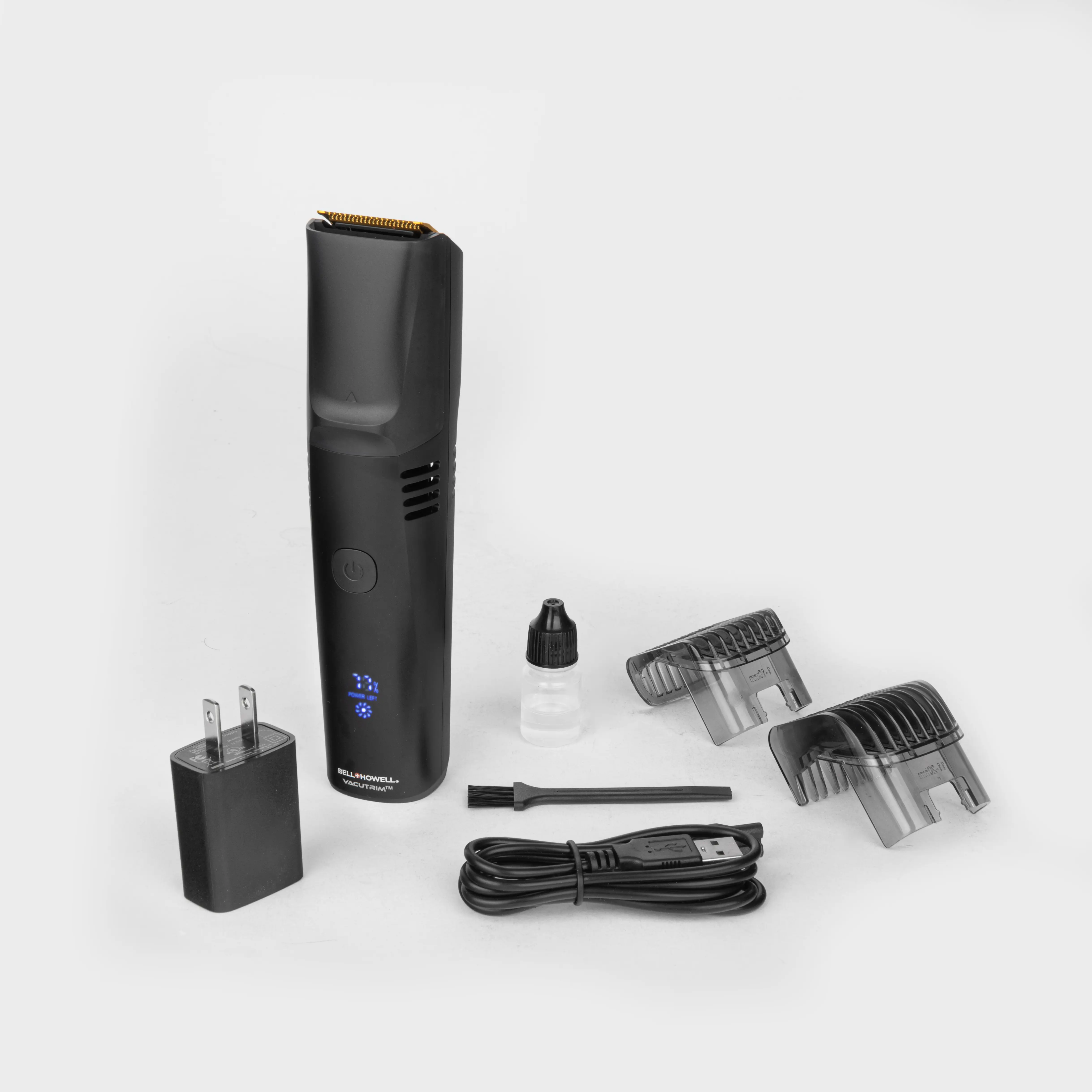 Introducing VacuTrim by Bell + Howell: the cutting-edge 2-in-1 solution for effortless grooming. Its revolutionary design empowers you to effortlessly dial and trim to your desired length, all with zero mess. Crafted with ultra-sharp stainless-steel blades, it ensures precision every time, while the integrated vacuum system swiftly sucks up all trimmed hair, leaving your space pristine.
