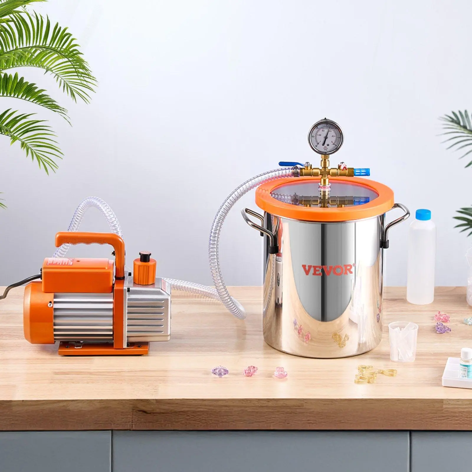 ·3-Gallon Vacuum Chamber: Crafted from high-quality stainless steel, our vacuum chamber for resin is built to withstand high pressure without warping or deforming. The fully transparent acrylic lid allows you to easily monitor the degassing process, giving you full control over your results.