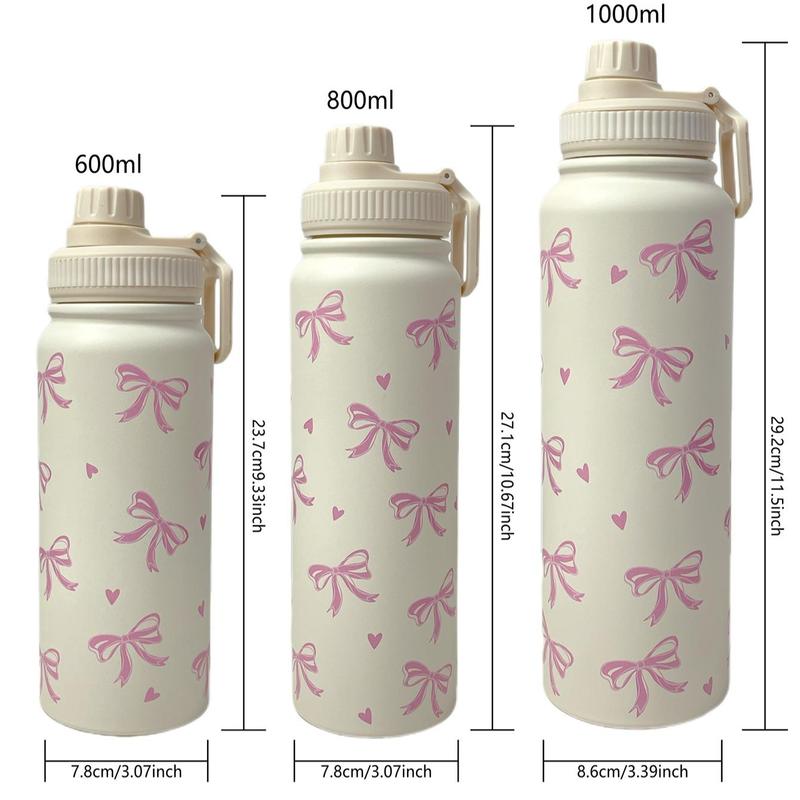 Bow Pattern Stainless Steel Vacuum Flask, 1 Count Portable Large Capacity Water Bottle, Summer Cool Bottle Drinking Cup for Home Office Outdoor Sports, Drinkware, Vacuum Insulated Flask, Stainless Steel Tumbler