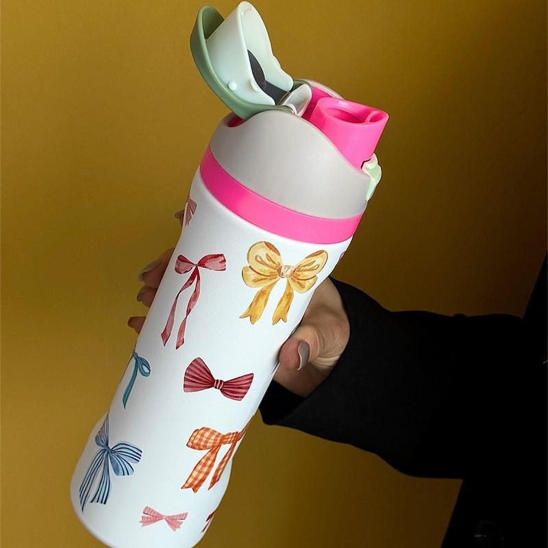 【Bow Pattern Detail】: The unique bow pattern adds a playful touch, distinguishing it from other water bottles and appealing to users.