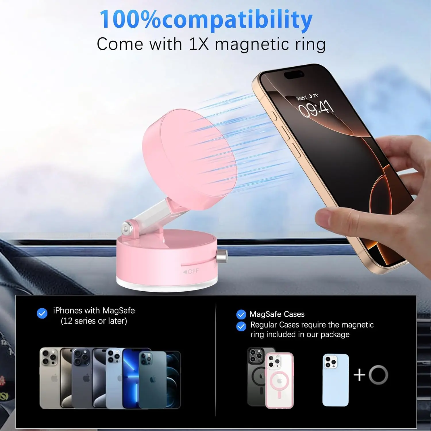 Ever struggled with phone mounts that slip or leave sticky residue? Meet the 2025 Vacuum Magnetic Phone Holder—your new best friend for hands-free convenience. Just twist the dial 90° to activate the powerful vacuum suction, holding your phone steady even on bumpy rides or dusty surfaces. Crafted with aerospace-grade aluminum alloy and a military-grade scratch-proof suction cup, it offers unmatched durability and stability. The foldable, ultra-portable design fits in your palm and comes with a handy travel pouch for life on the go. Compatible with all smartphones from 4.7" to 7.2", including the latest iPhone and Samsung models, it includes three ultra-thin magnetic plates for non-magnetic cases. Whether you're cruising, working out, cooking, or getting ready, this phone holder sticks firmly to dashboards, windshields, desks, and more—no adhesives or charging needed. Upgrade your daily routine with a mount that’s as versatile and tough as you are. Grab yours today and enjoy hands-free freedom wherever life takes you!