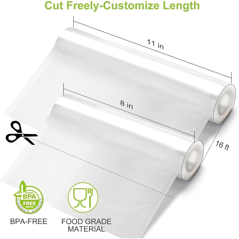 Bonsenkitchen Vacuum Sealer Rolls Bags, 6 Pack 3 Rolls 11" x 20' + 3 Rolls 8" x 20' Commercial Grade BPA Free Bag Rolls, Durable Customized Size Food Vac Bags for Storage and Sous Vide Cooking VB3211