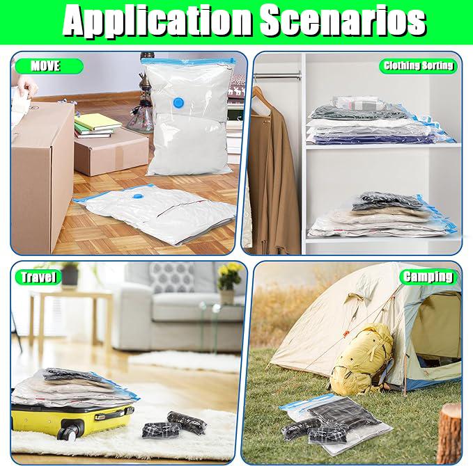 ·Multiple Size Choice: Our vacuum storage bags are offered in a full range of sizes, include 3 Jumbo Storage Bags (39.4 x 31.5 in), 3 Large Storage Bags (31.5 x 23.6 in), 3 Medium Storage Bags (27.6 x19.7 in), 3 Small Storage Bags (23.6 x15.7 in), perfect for a range of items! Store your clothes, coats, duvet, bed sheets, towels, blankets, and more!