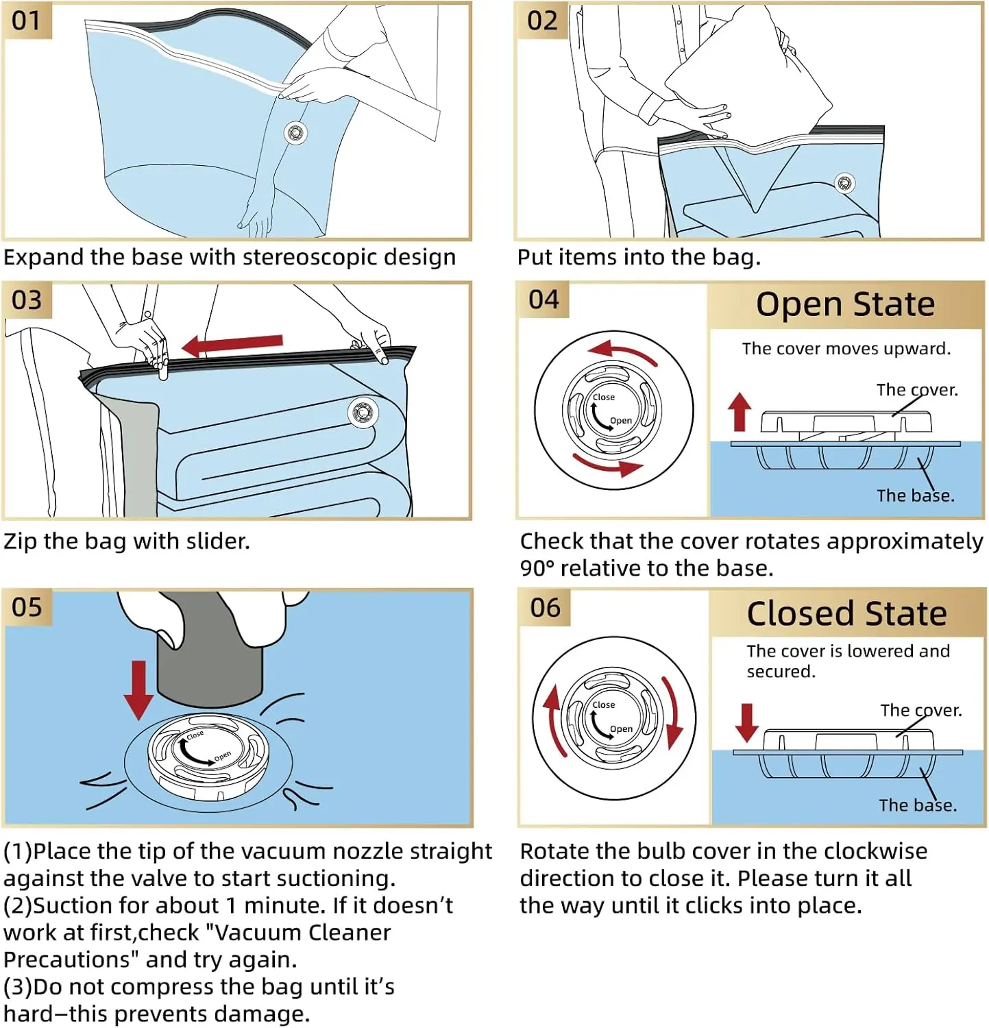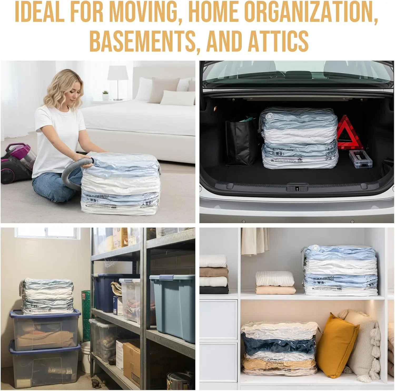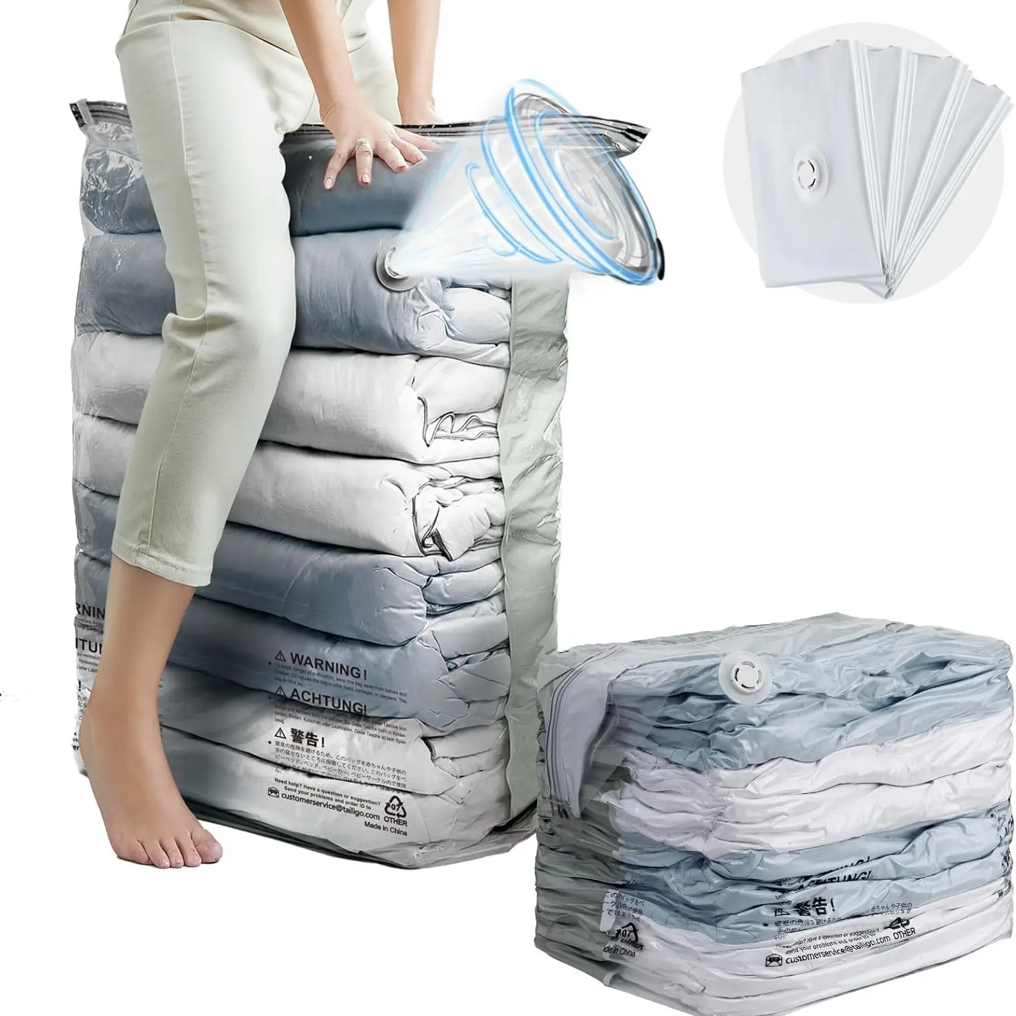 Vacume storage baga are amazing, they are so huge you can put a lot of blankets, towels, ext.. know I have much space in my closet happy with my purchase.