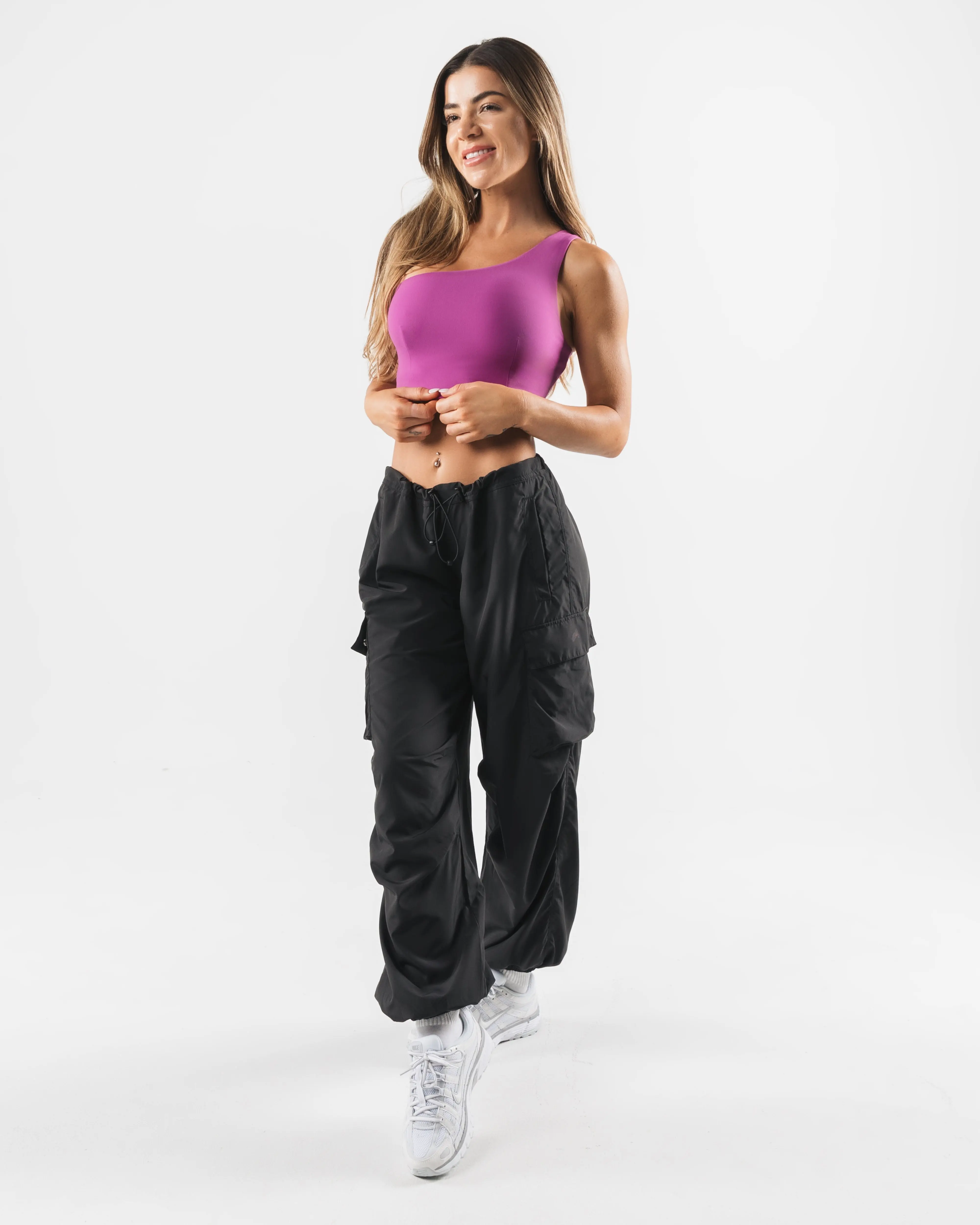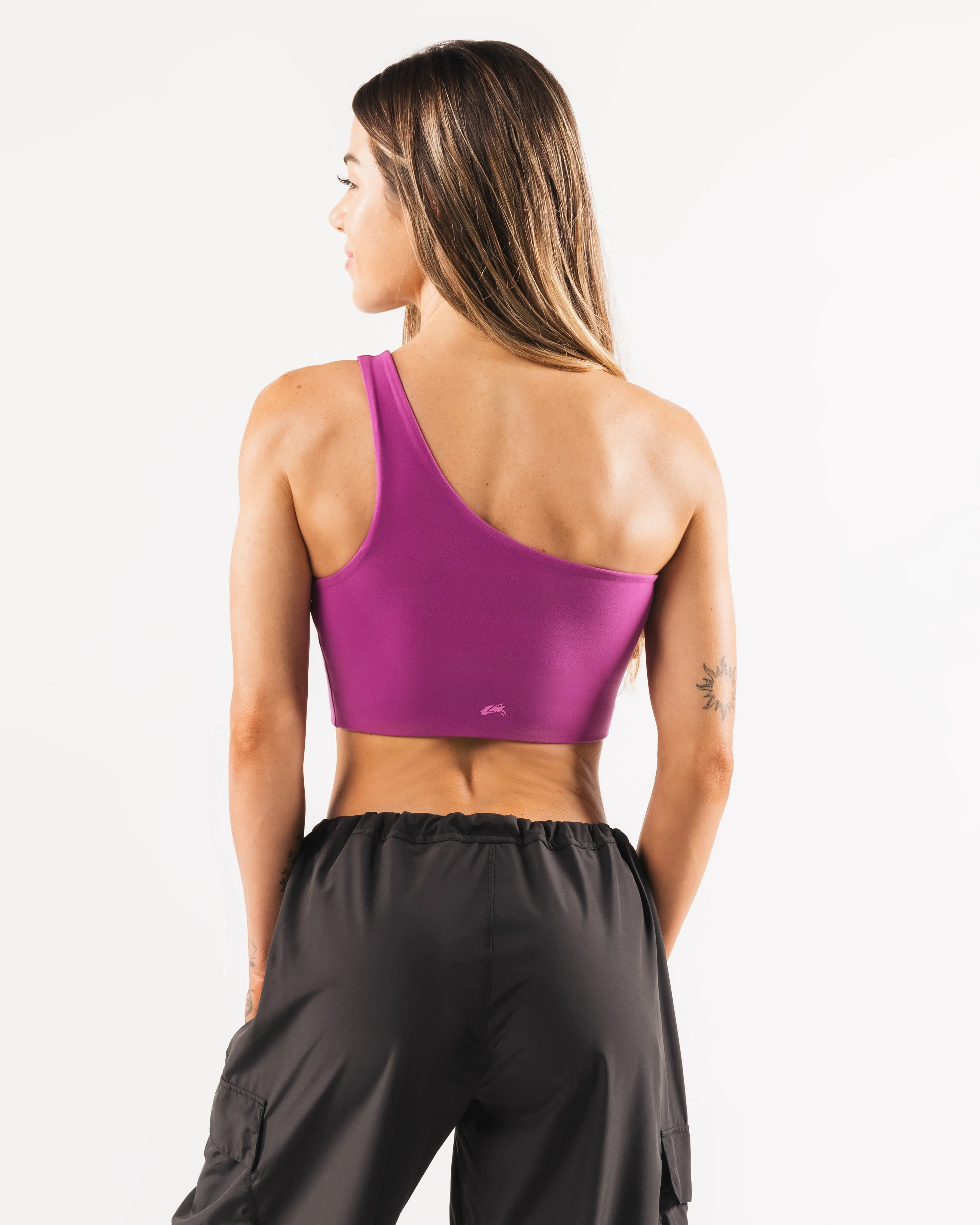 Tenacity is our newest high performance fabric. Extreme high stretch meets a buttery soft hand-feel to make this fabric the perfect ten. These bras allow for unrestricted movement and breathability making them perfect for everyday wear. This one shoulder bra offers a flattering longline cut and higher neckline making it perfect for any type of workout.
