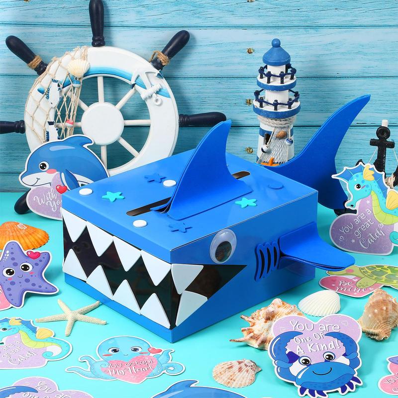 ·Shark:our 3D valentines boxes for kids classroom includes a shark mailbox, 36 Valentine cards with 6 ocean animals, a pair of shark eyes, and DIY foam stickers like shark fins, teeth, and stars for decoration, which can meet all your decor need.