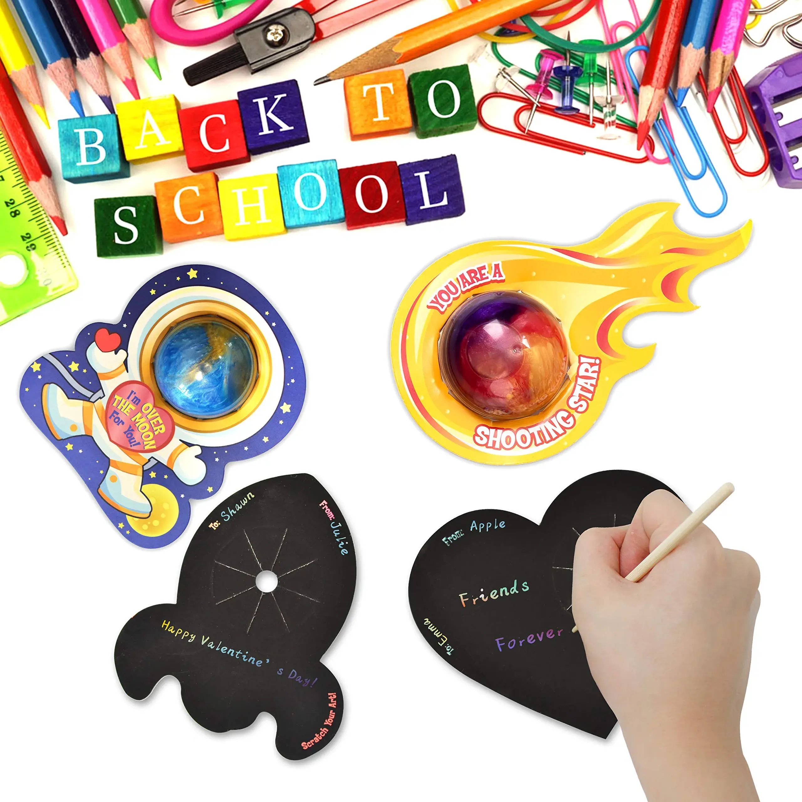 Seriously, the cutest Valentines I’ve ever seen! Incredible quality, comes with everything you need and I love that They also are scratch art on the back! I’m happy I got them early before they sell out