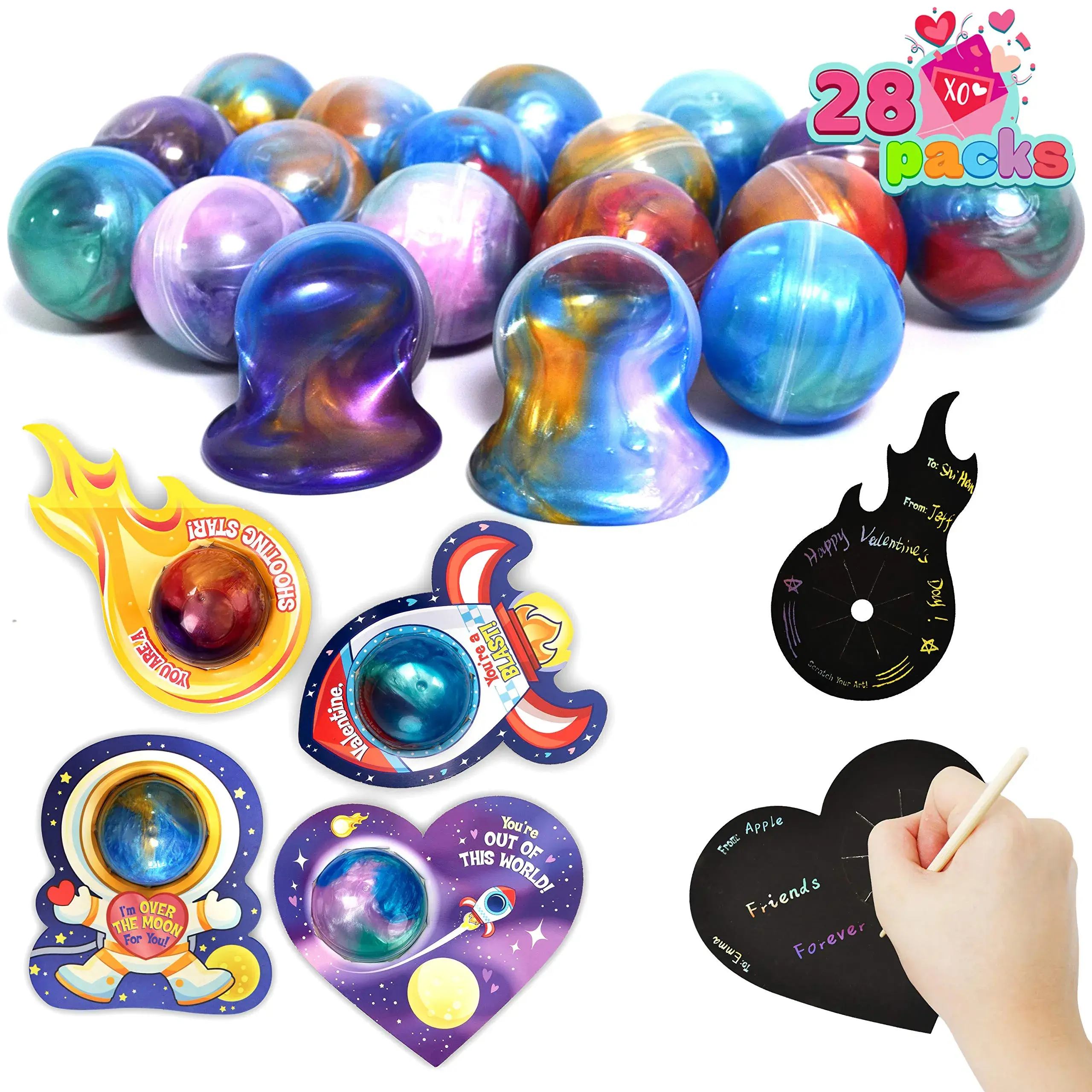 These are absolutely perfect for my son’s class valentines! They aren’t messy and the colors are so cute. The scratch cards are an awesome touch as well! Exceeded my expectations!