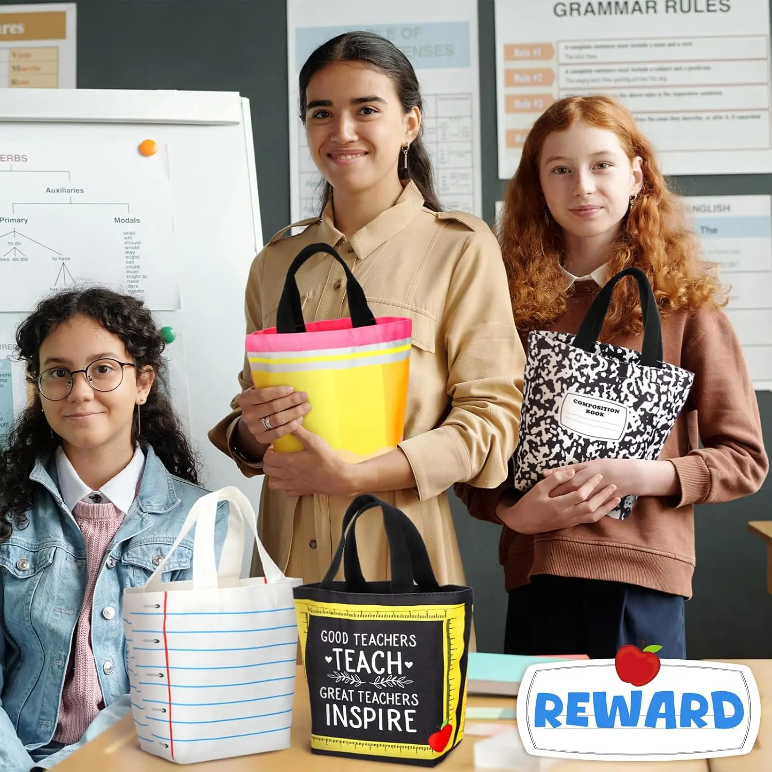 ✨ Ideal for Teachers and Students: These 6/12 Pcs back to school teacher Appreciation Gift Bags are perfect for school study supplies. They feature a pencil, crayon, marble, and apple pattern. Ideal for welcoming the first day of school or as class rewards. 📚
