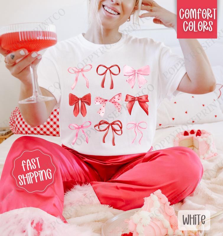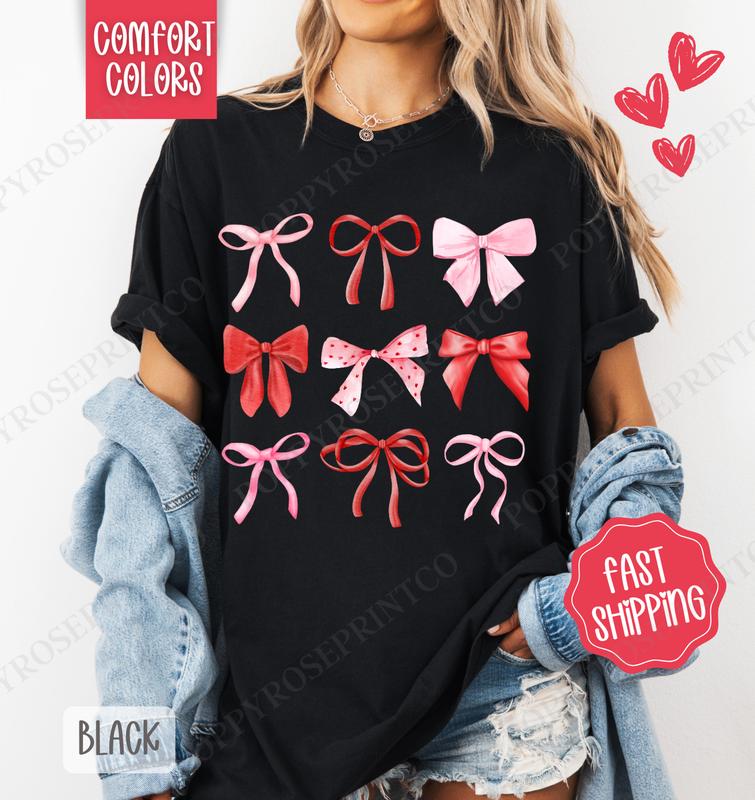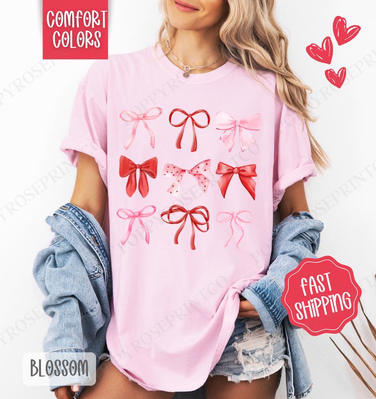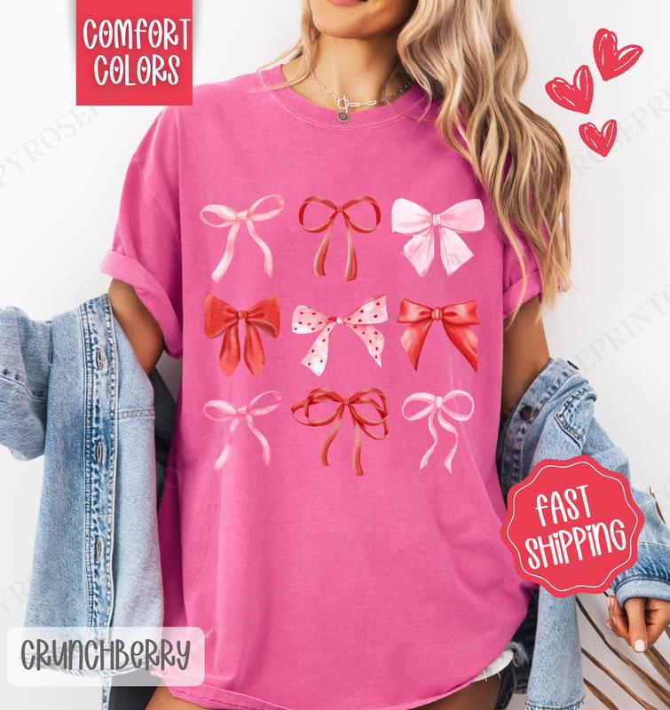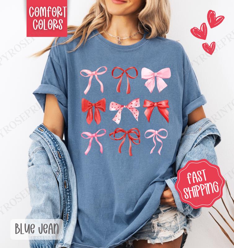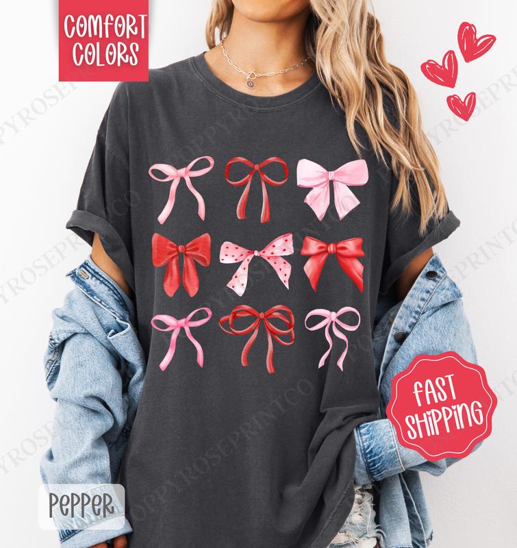 5. Valentine Bows Shirt Comfort Colors, Valentine's Day Women's Tee, Holiday Women's Tshirt