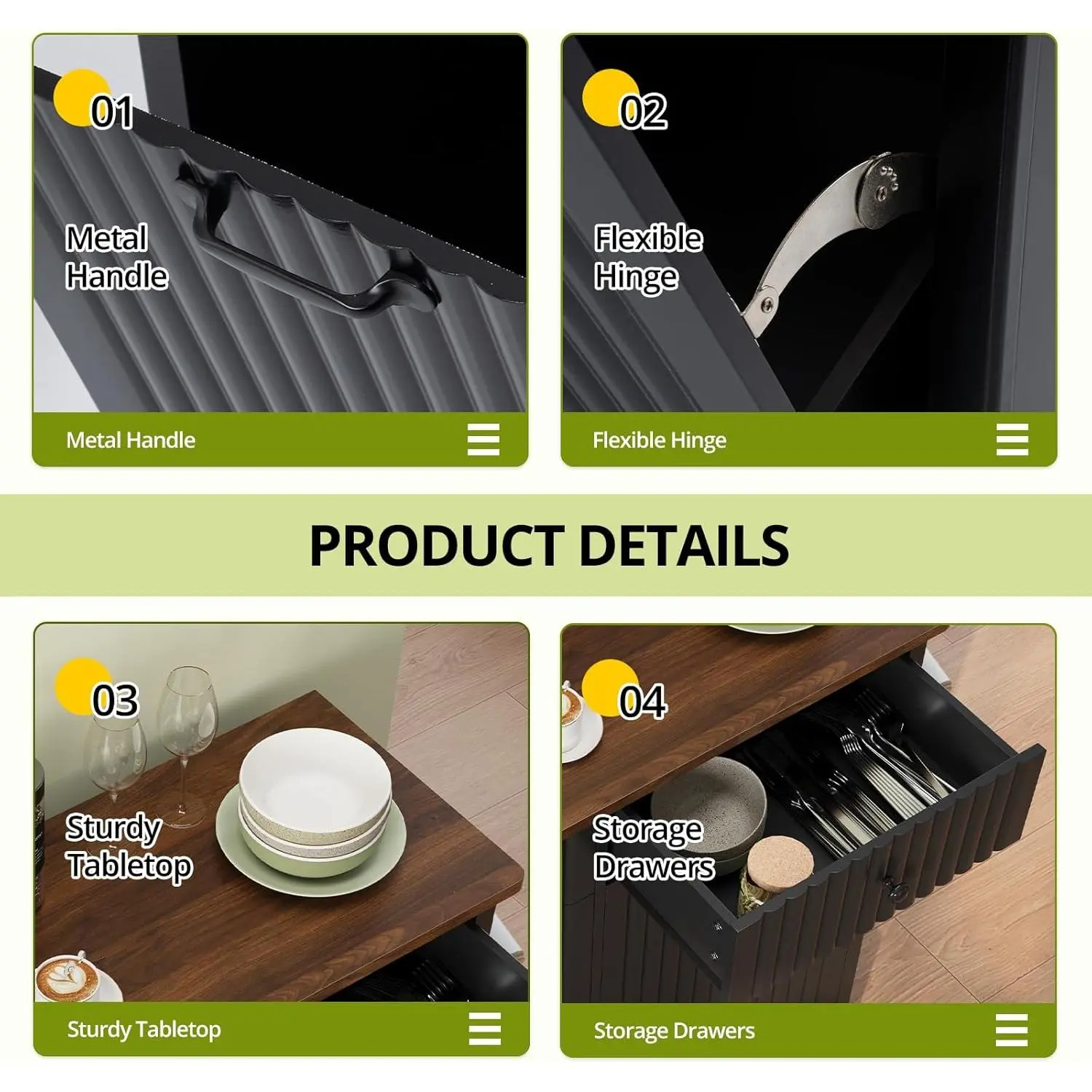[Modern Fluted Style]: Features wavy fluted panels & modern wood texture to boost texture and space sense.Blends elegant lines with smooth surfaces for visual appeal; complements modern or classic styles, ideal for kitchens, dining rooms, laundry rooms.