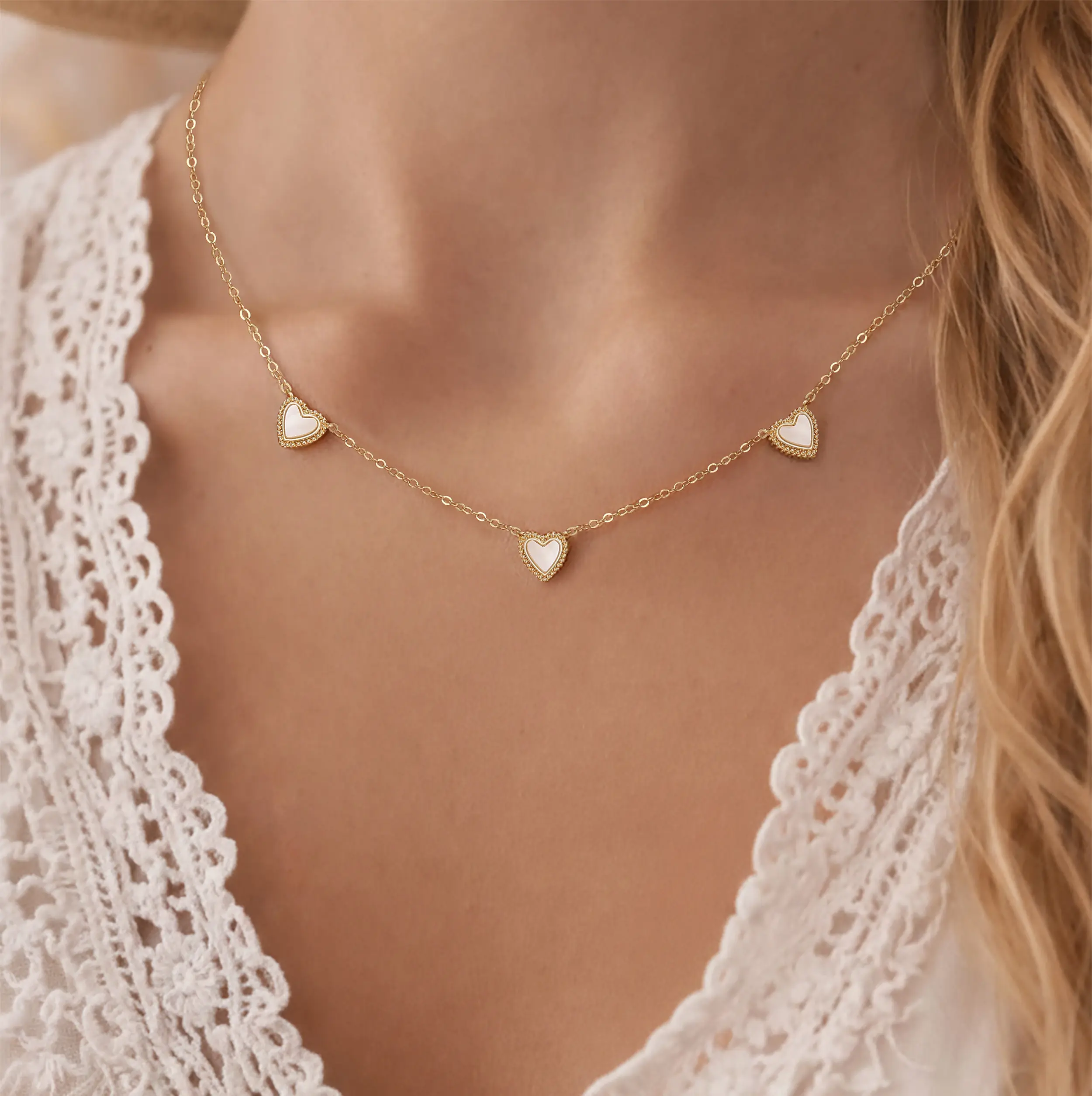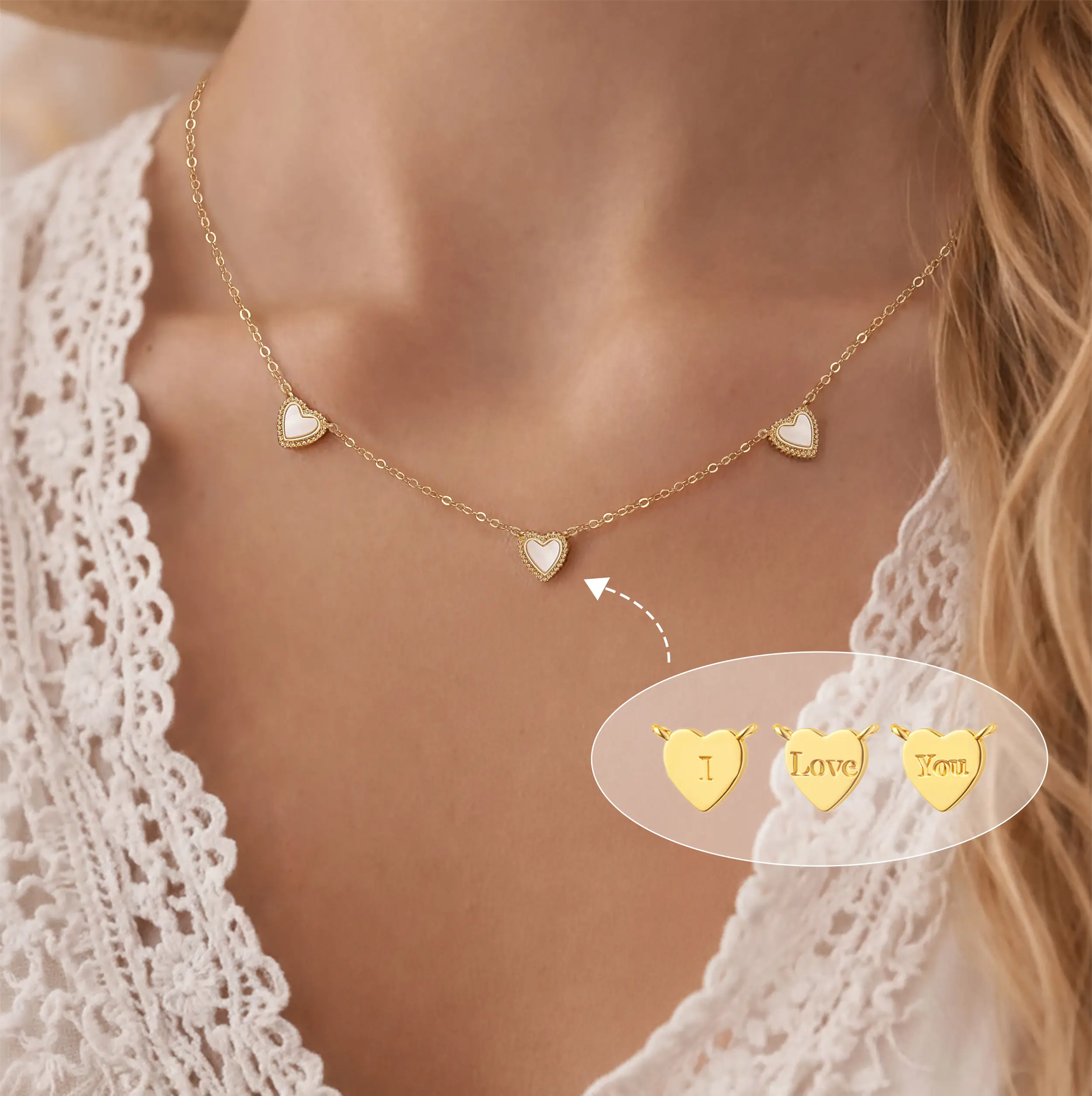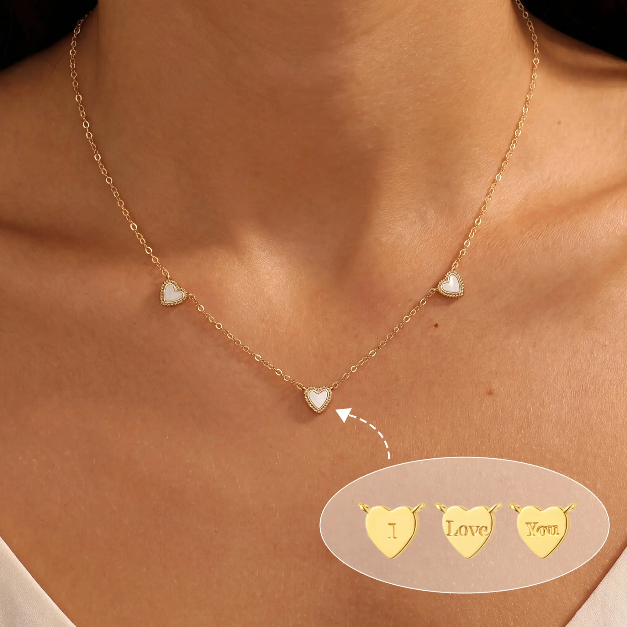 ·Small Gold Love Open Heart Chain: The necklace is made with a small gold love open heart chain, offering a delicate and romantic touch.