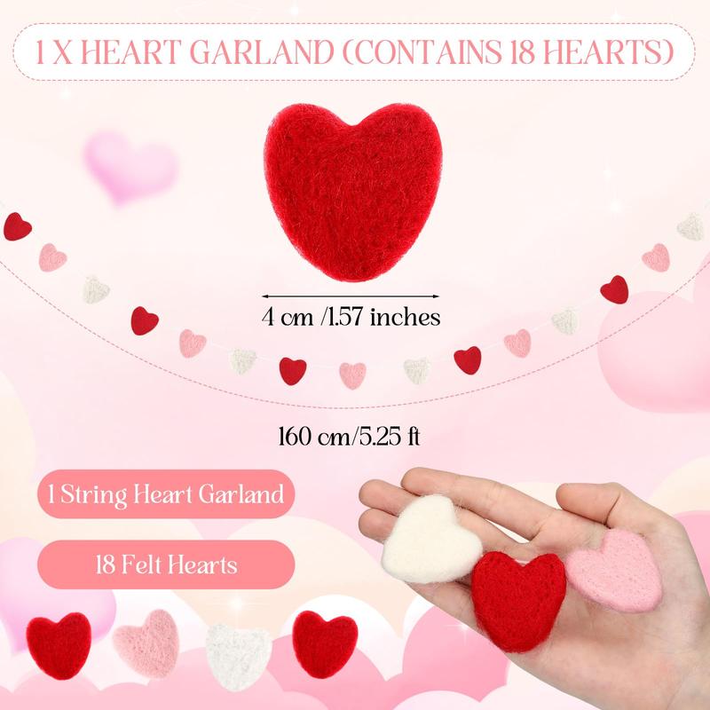 18 Pcs Felt Heart Garland Set (5.25 ft):The package includes 1 heart garland connected by 18 felt hearts. Each heart diameter is about 4 cm/1.57 inches, and the string size is about 160 cm/5.25 ft in length.