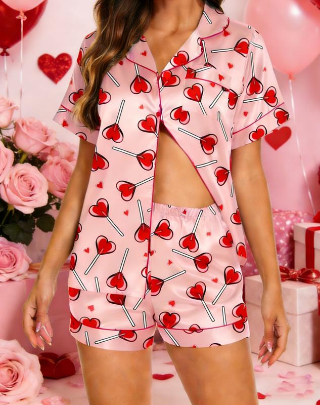 ·Heart-Shaped Design: This sleepwear set features a charming heart-shaped lollipop design, perfect for Valentine's Day. 🌹