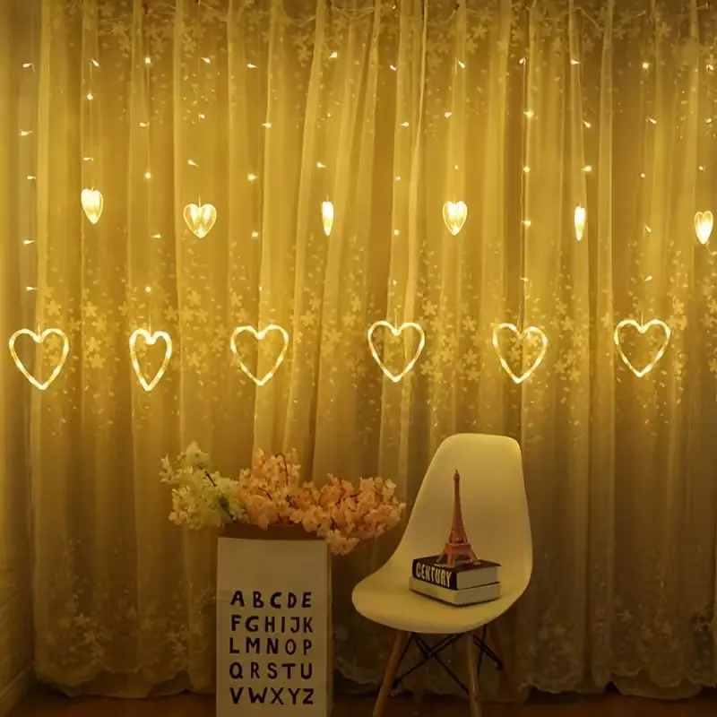 ใ€Heart Shapeใ€‘: The curtain lights feature a heart shape, adding a romantic theme to your dรฉcor for special occasions.