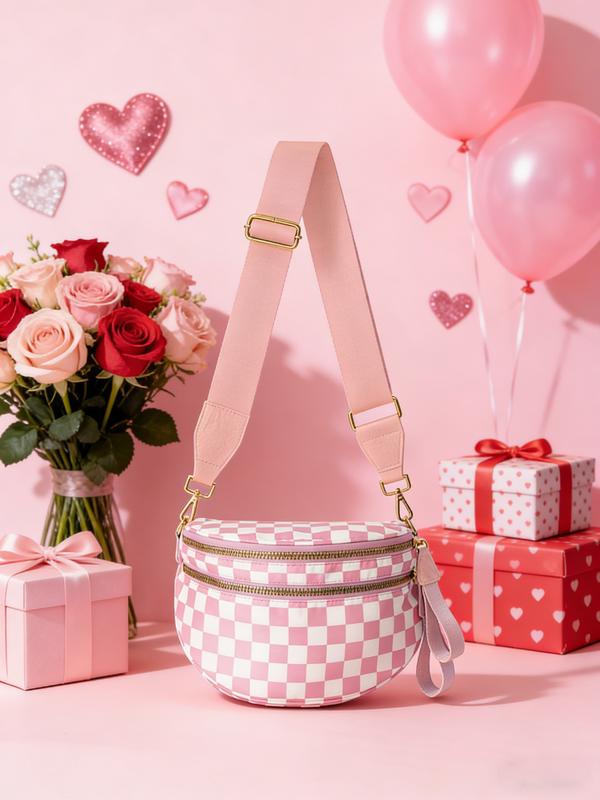 【Plaid Pattern】: Featuring a distinctive black and white plaid design, setting it apart from standard crossbody bags.