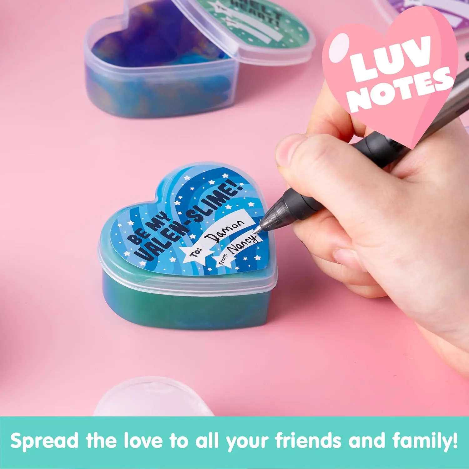 ·Love Notes: Each box has a love note about slime, matching the Valentine's Party Gift Exchange.