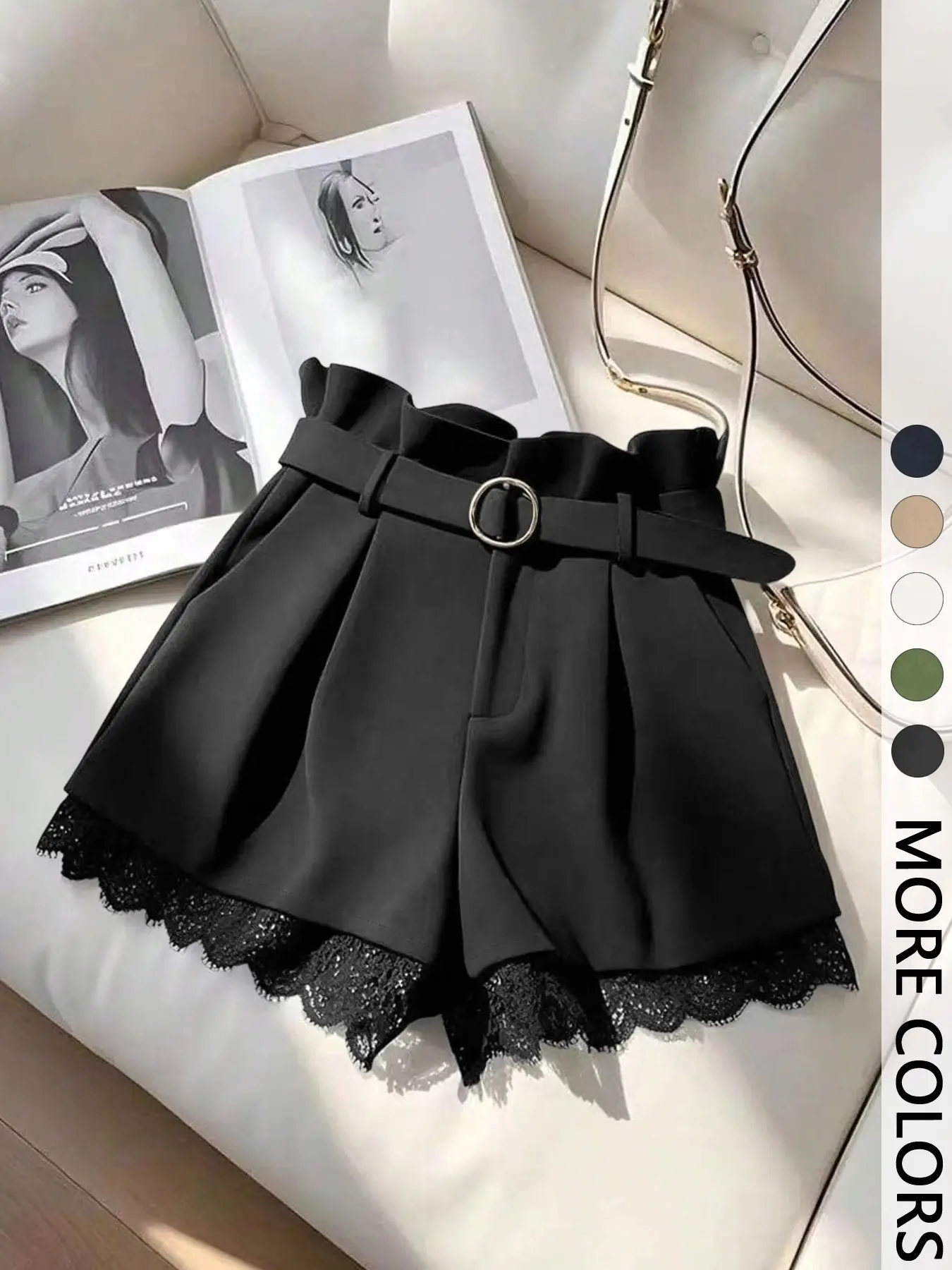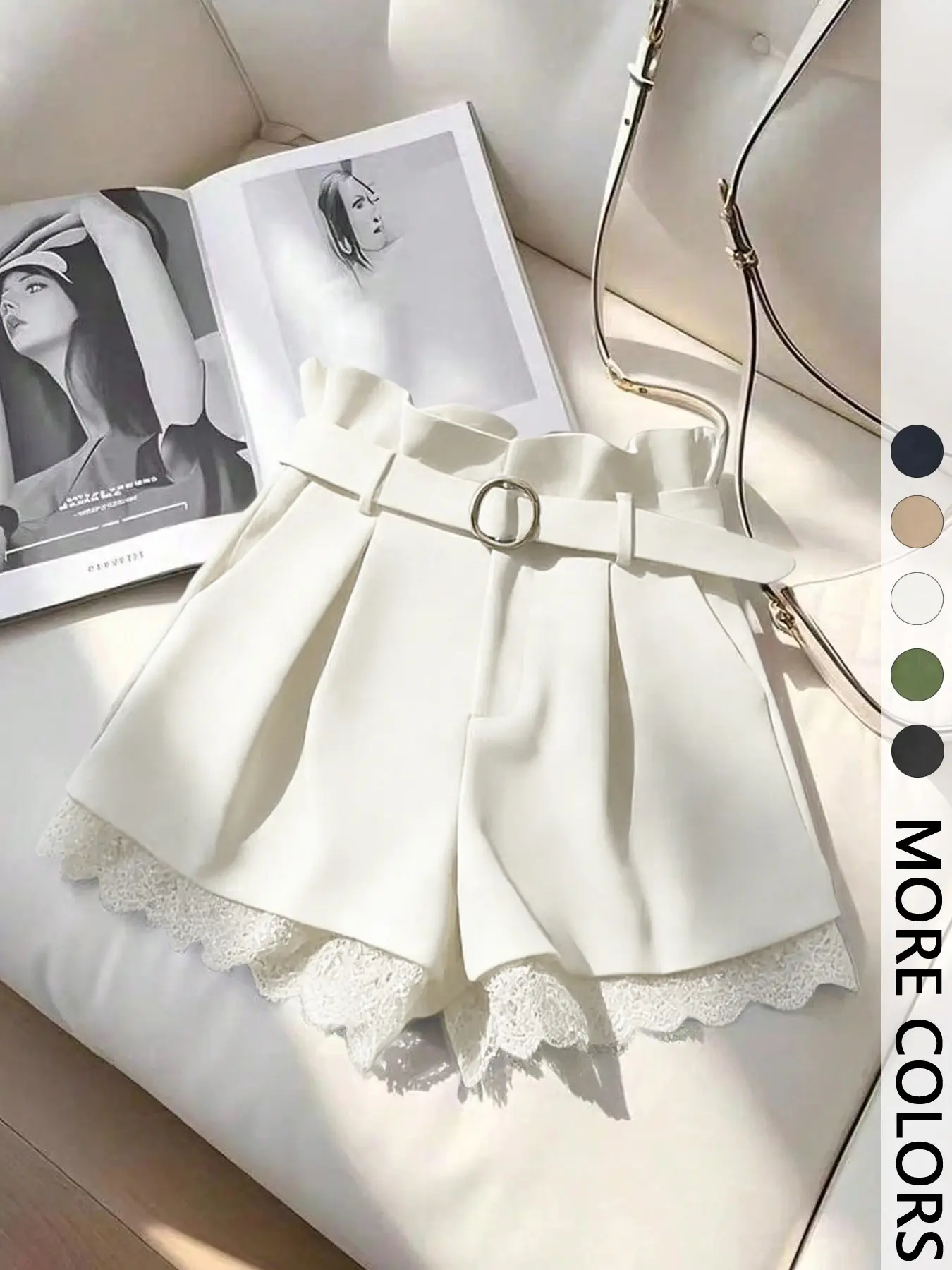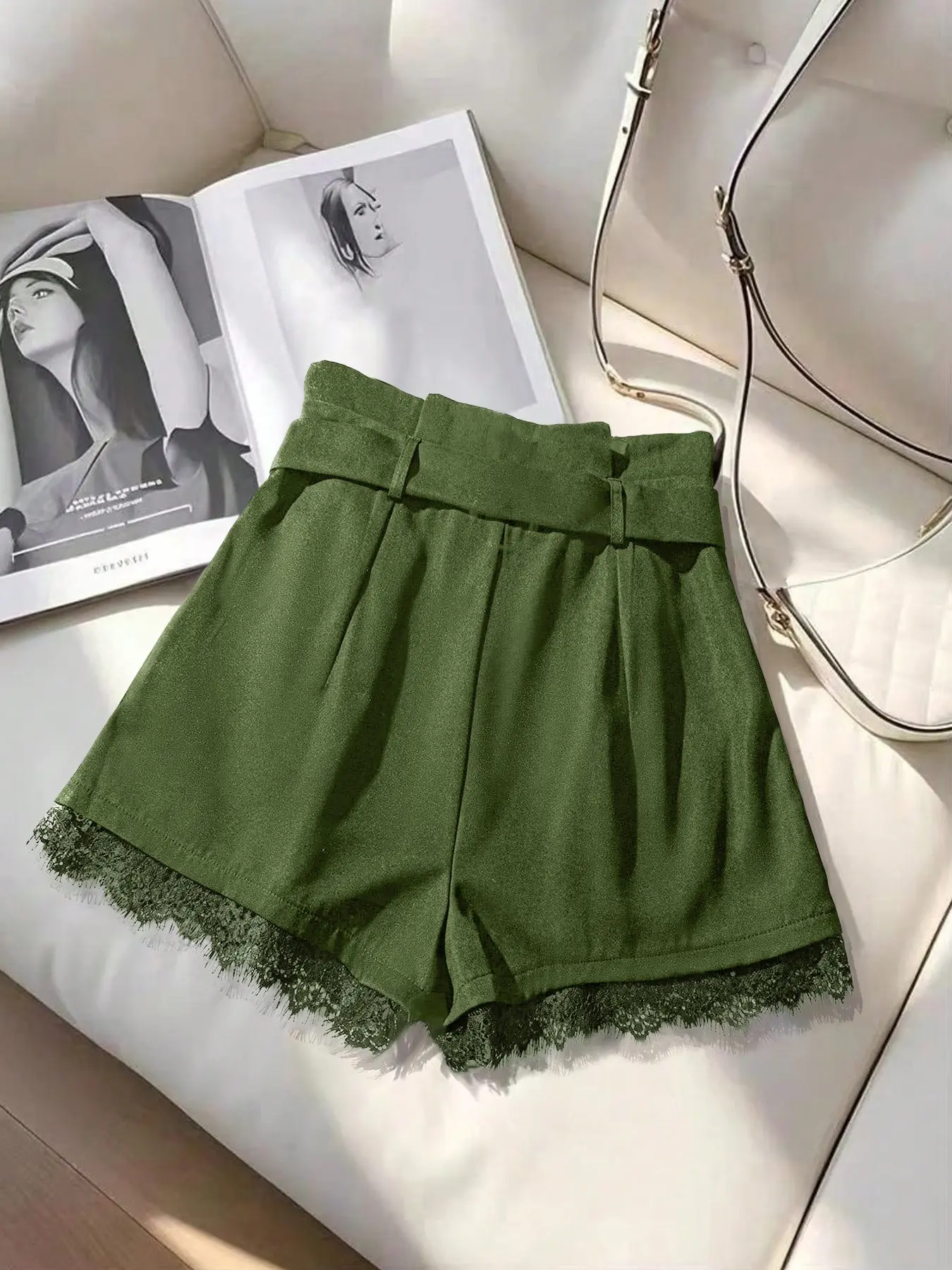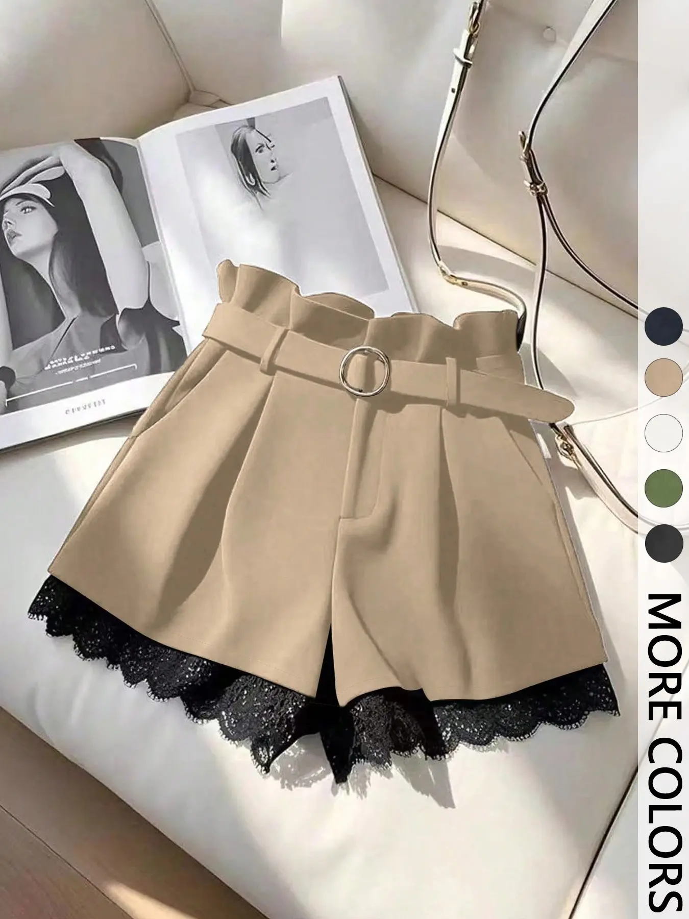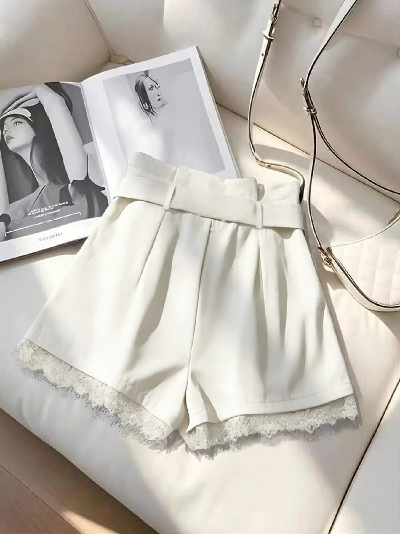 5. Women's Summer Shorts Elegant Series Fashion Versatile (with Belt), Fitted Design Contrast Lace, Plain Pattern Short Pants