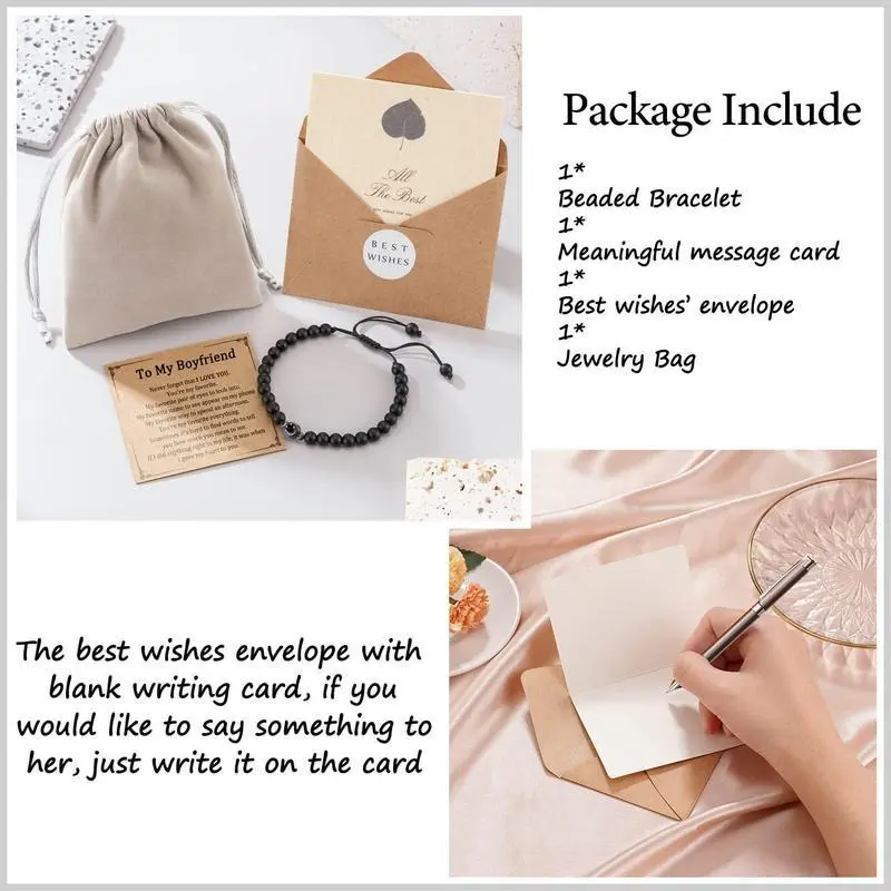 BOYFRIEND GIFTS - It's a great gift for your boyfriend or husband, let him know you love him always and forever, how it's lucky to meet a man like him, and he is your best friend, your soulmate, and everything. Simple bracelet but with full warm power. MATERIALS - Made of 6mm Black Onyx Stone, Since stones are natural materials, stone colors and shapes may vary slightly from the picture, making this beautiful handmade item unique just like you! SIZE - The bracelets come with a sliding knot closure with adjusting from 7'' to 11'', fits over your hand and wrist, waterproof, durable, and comfortable. PERFECT GIFT - When You Bring the bracelet for your boyfriend or husband, It will be a perfect gift for Wedding Anniversary, Birthday, Father's Day, Christmas, New Year's Day, Valentine's Day, Family Gathering, Party And Other Festivals. It will be a great gift.