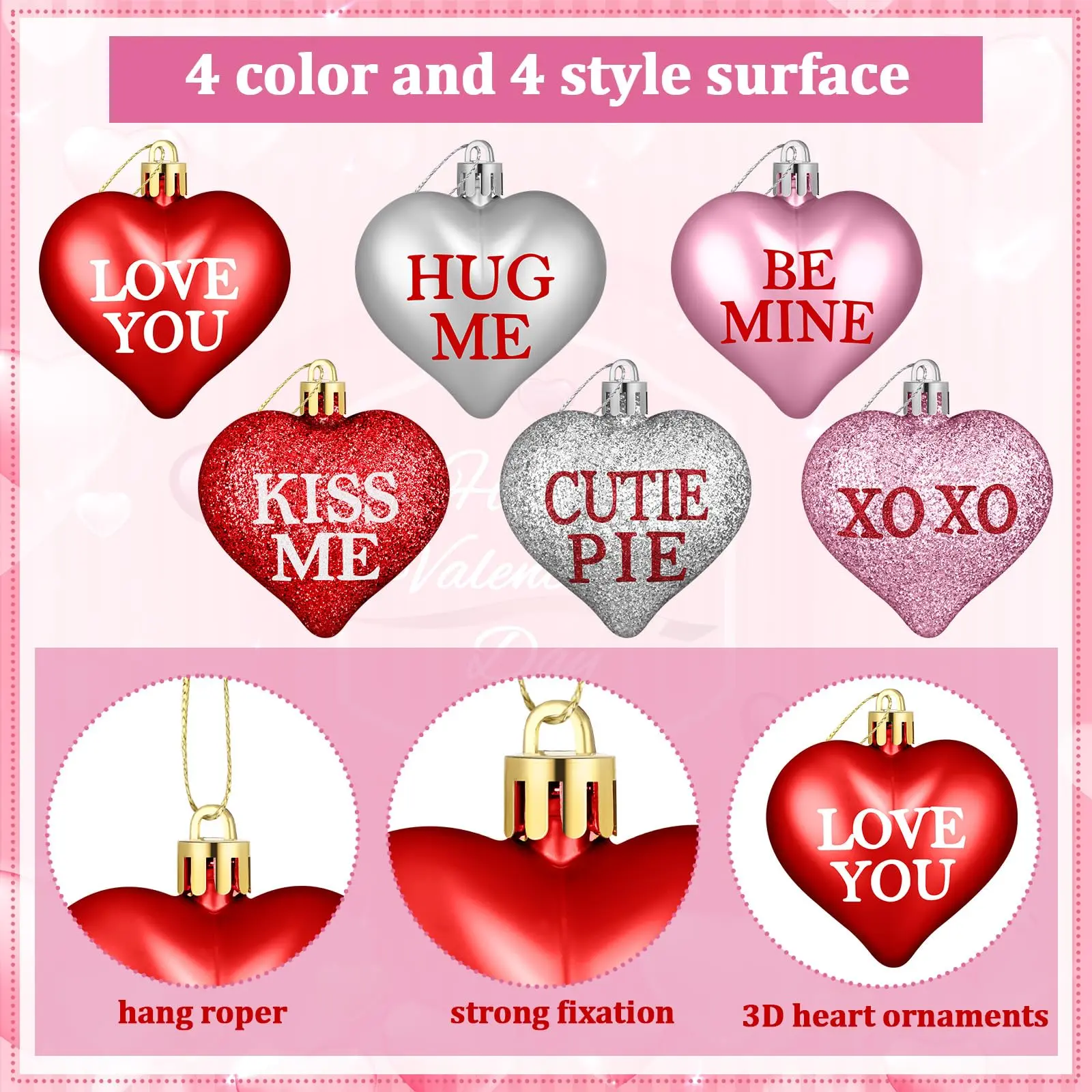Let’s deck out your Valentine tree with these 60 glitter heart ornaments! 9 sweet phrases + red/pink/silver sparkle—cover the tree in shiny, romantic vibes~#valentinesdecor #heartdecor #valentinestree #treedecorating #valentinesday