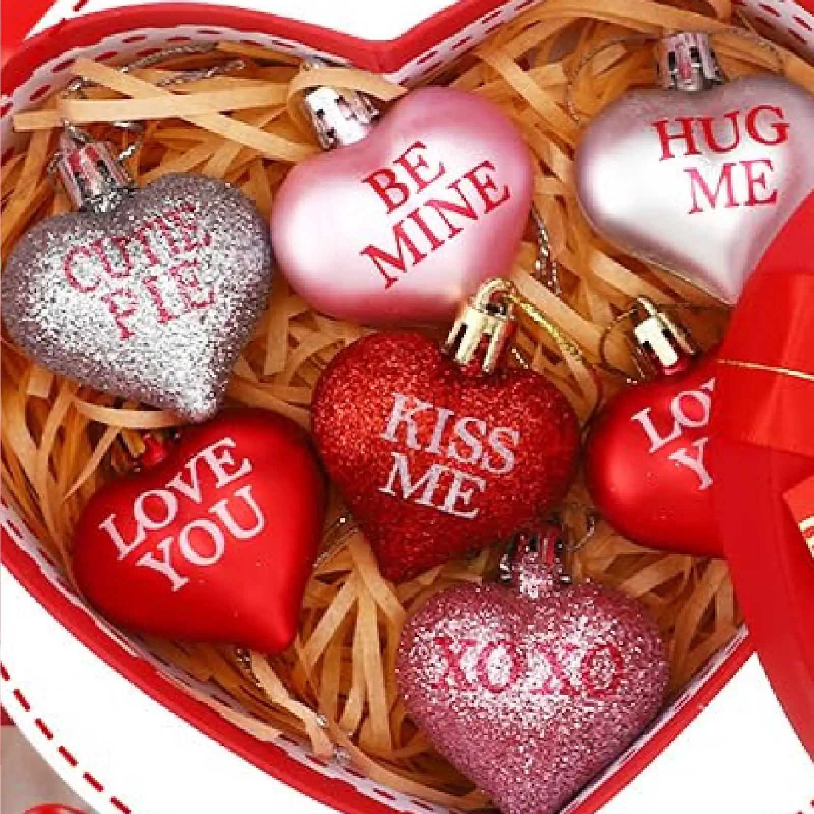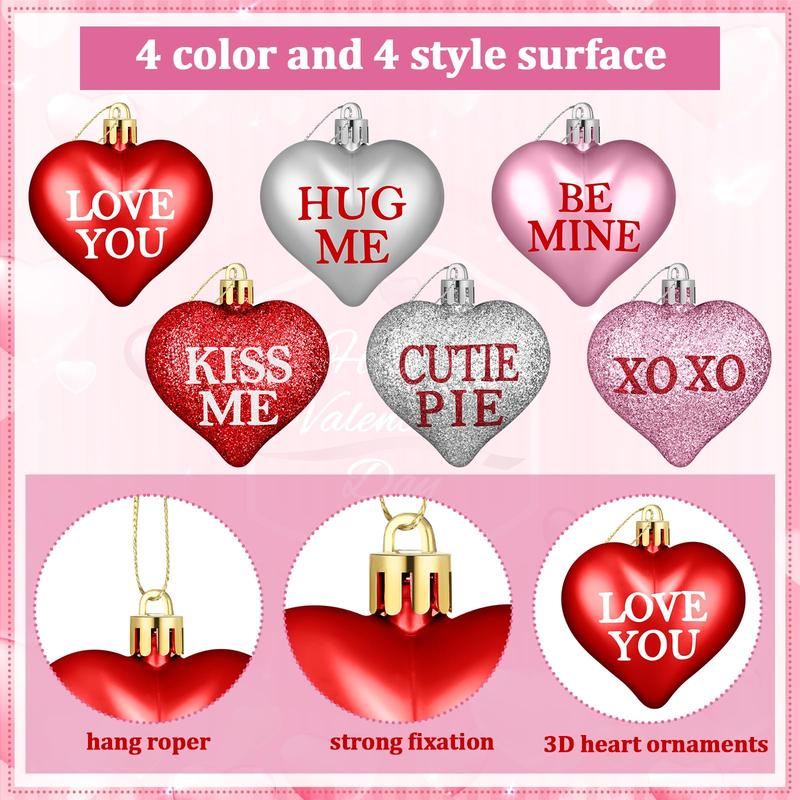 Tired of pricey, boring V-Day decor? This 60-pack is a steal! Red/pink/silver glitter hearts with love phrases—perfect for trees/bedrooms. 6 styles in one pack, great for gifts too. Shop now! #valentinesdecor #heart #valentinestree #valentinesday #homedecor