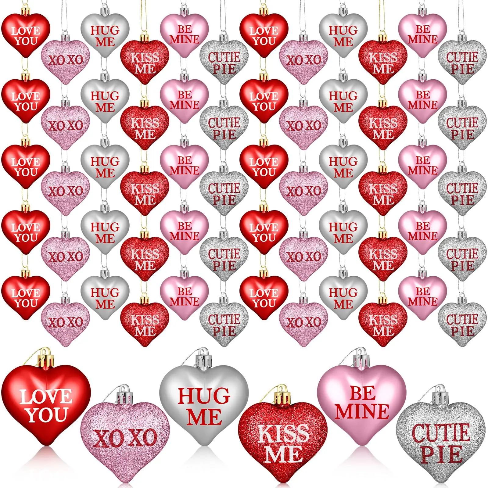 60 Pcs Valentine's Day Heart Shaped Hanging Ornaments with Love Letter for Valentines Tree Birch Tree, Red Pink Silver Glitter Heart Baubles Romantic Atmosphere Valentines Decor for Tabletop Bedside Bedrooms Room Mantle Birthday Wedding Party Home Decor60 Pcs Valentine's Day Heart Shaped Hanging Ornaments with Love Letter for Valentines Tree Birch Tree, Red Pink Silver Glitter Heart Baubles Romantic Atmosphere Valentines Decor for Tabletop Bedside Bedrooms Room Mantle Birthday Wedding Party Home Decor