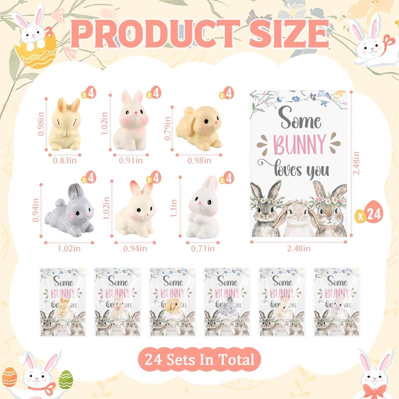 ·24 Sets of Easter Gifts: Includes 24 "Some Bunny Loves You" cards and 24 mini bunny resin animals in 6 designs.