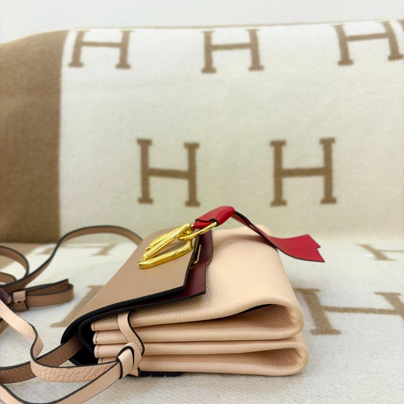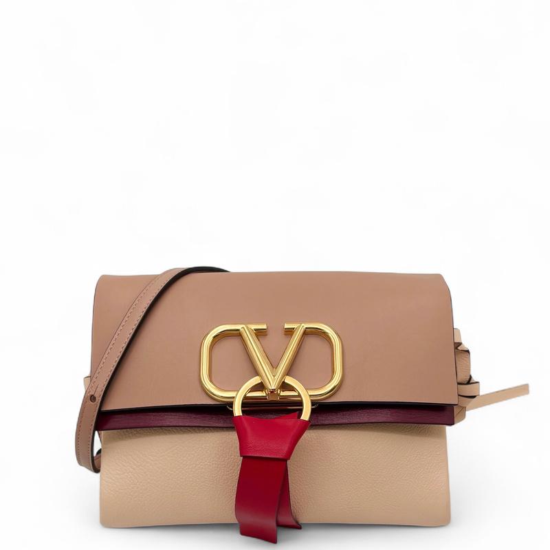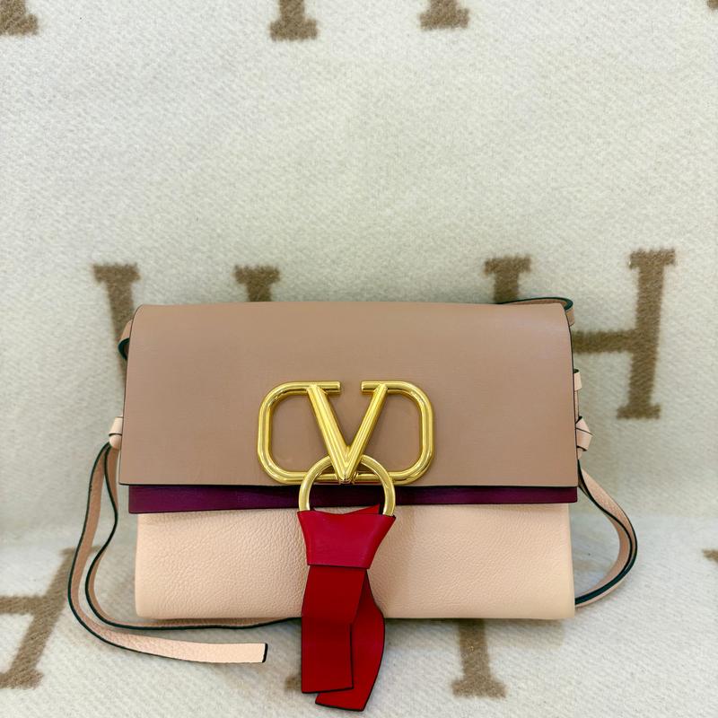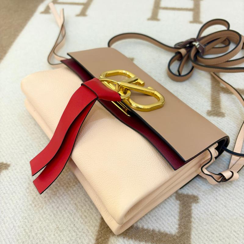 Pre-owned Valentino Small V-Ring Crossbody Bag Calfskin Burgundy Light Pink Red (0603m7)