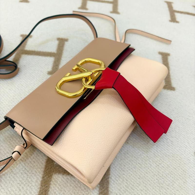 Pre-owned Valentino Leather Shoulder Bags Small V Ring Crossbody Bag Calfskin Burgundy Light Pink Red (0603m7)