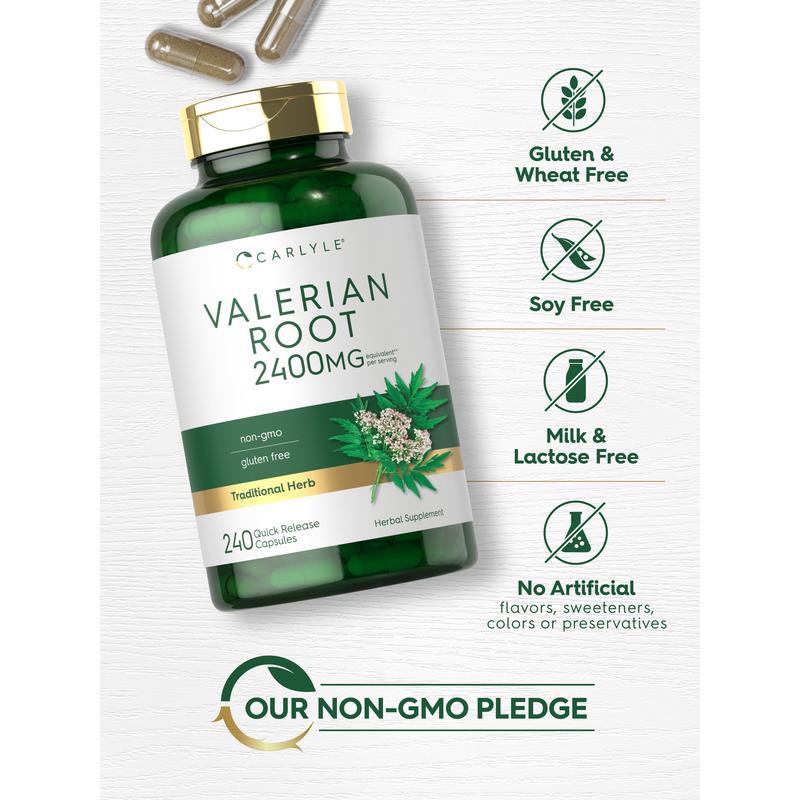 Find your serenity with Carlyle Valerian Root. This formula is the perfect way to invite support to your routine, providing a blend that features the equivalent of 2,400 mg of Valerian Root in each quick-release capsule.** It's gluten-free, non-GMO and lab tested to maintain our exceptional standards of quality. You deserve nothing less than the best for your lifestyle!