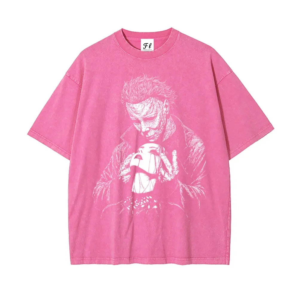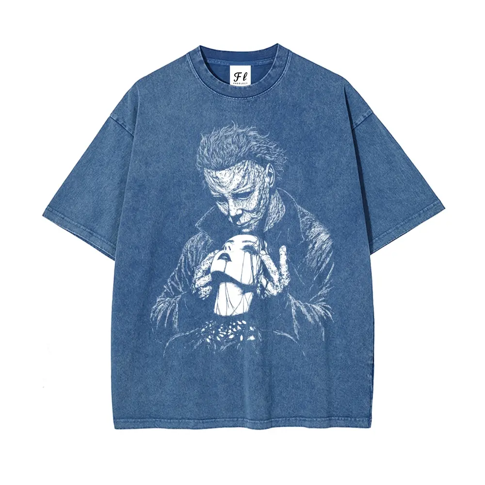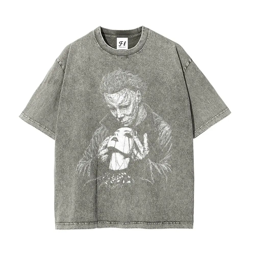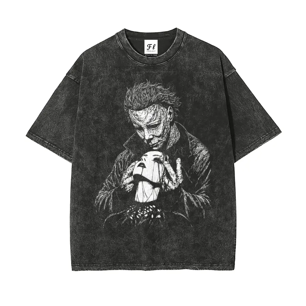 5. Valloween Goth Valentine Dark Romance Michael Myers Unisex Washed T-Shirt for Women and Men's Unisex Fit Batik Cotton Oversize Streetwear Menswear Super Soft Pre-Shrunk
