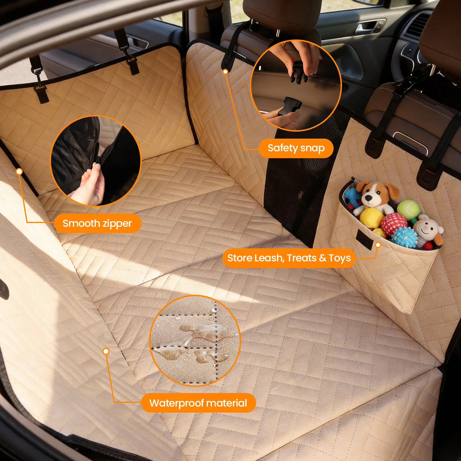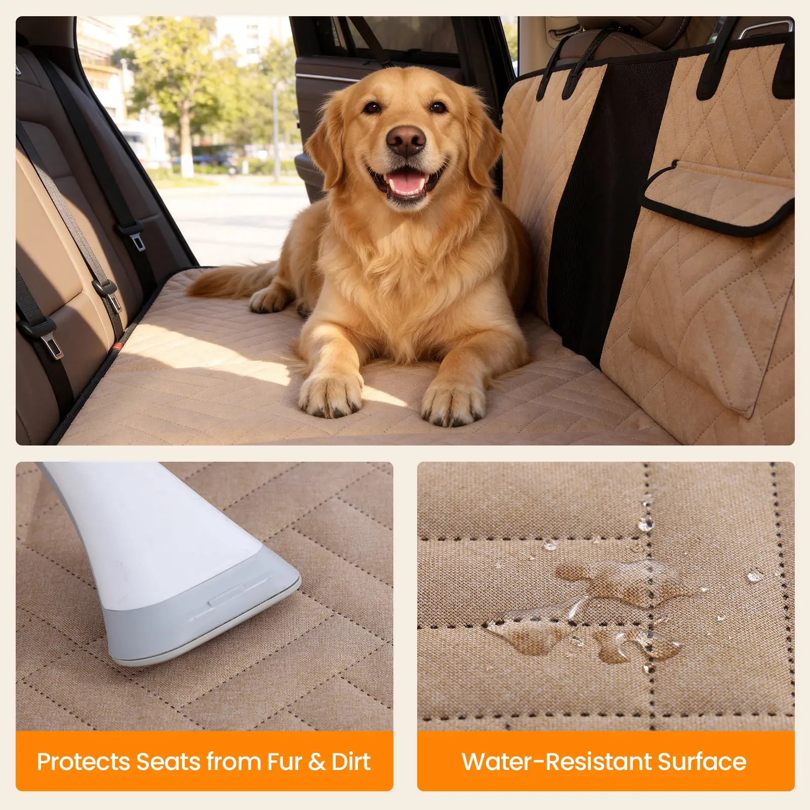 Made with waterproof-grade fabric to block spills, drool, mud, and pet hair, keeping your car interior clean and protected during daily drives or longer trips.