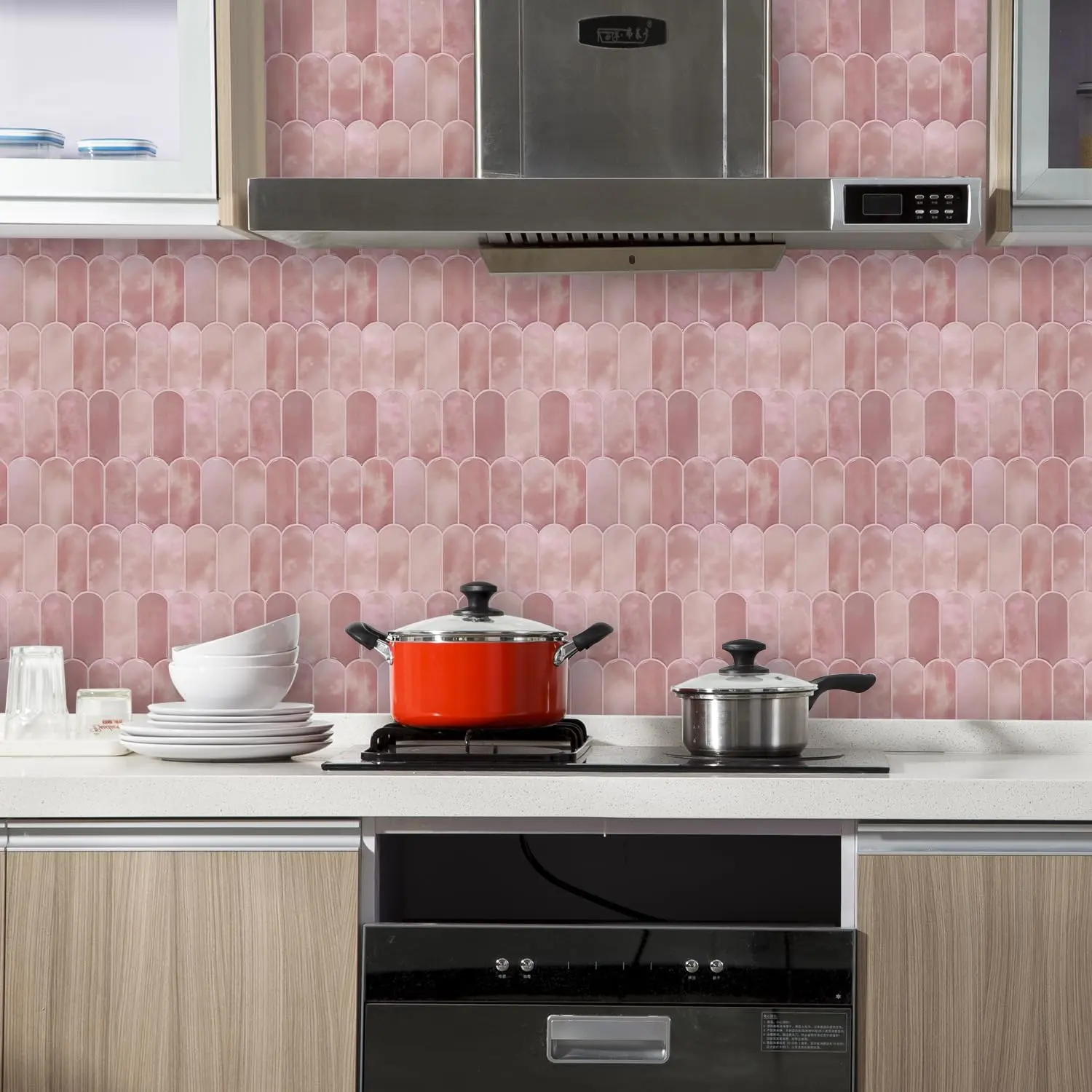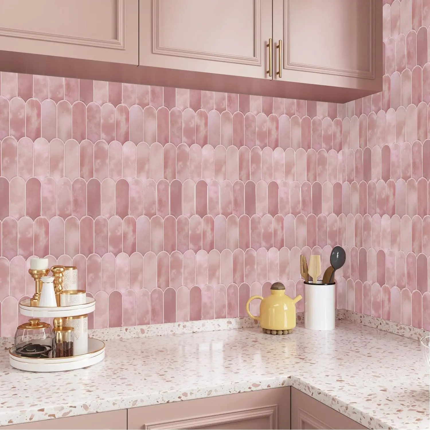 #creatorsearchinsights #pinkkitchens #pinkbacksplash #kitchenglowup #sticktiles #kitchenbacksplash