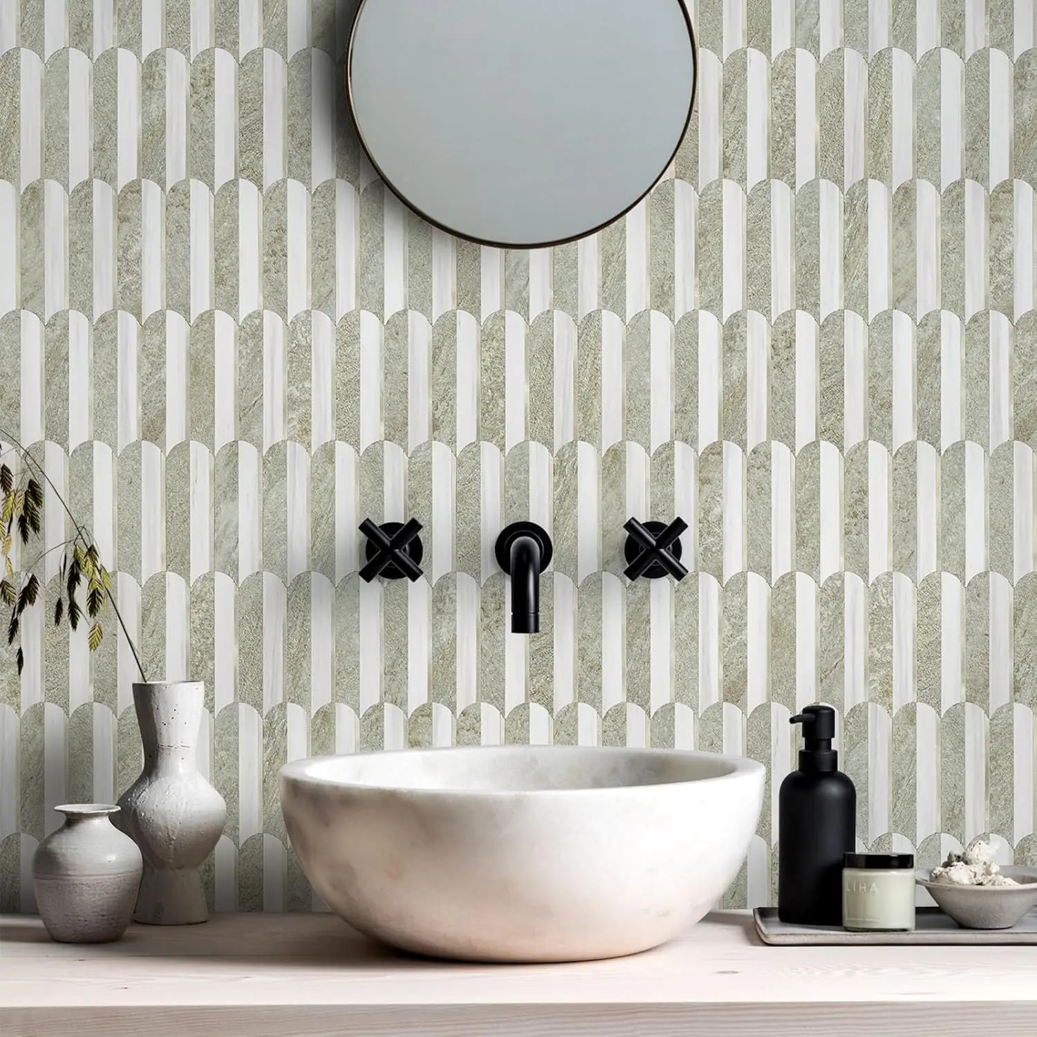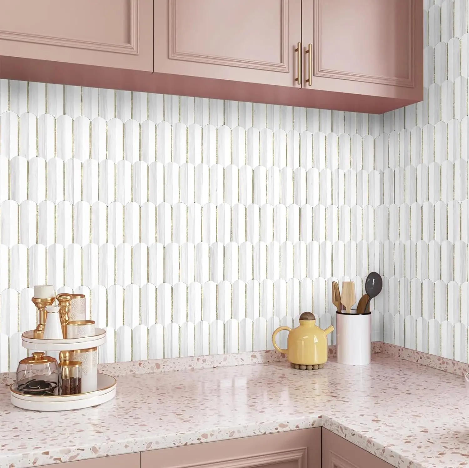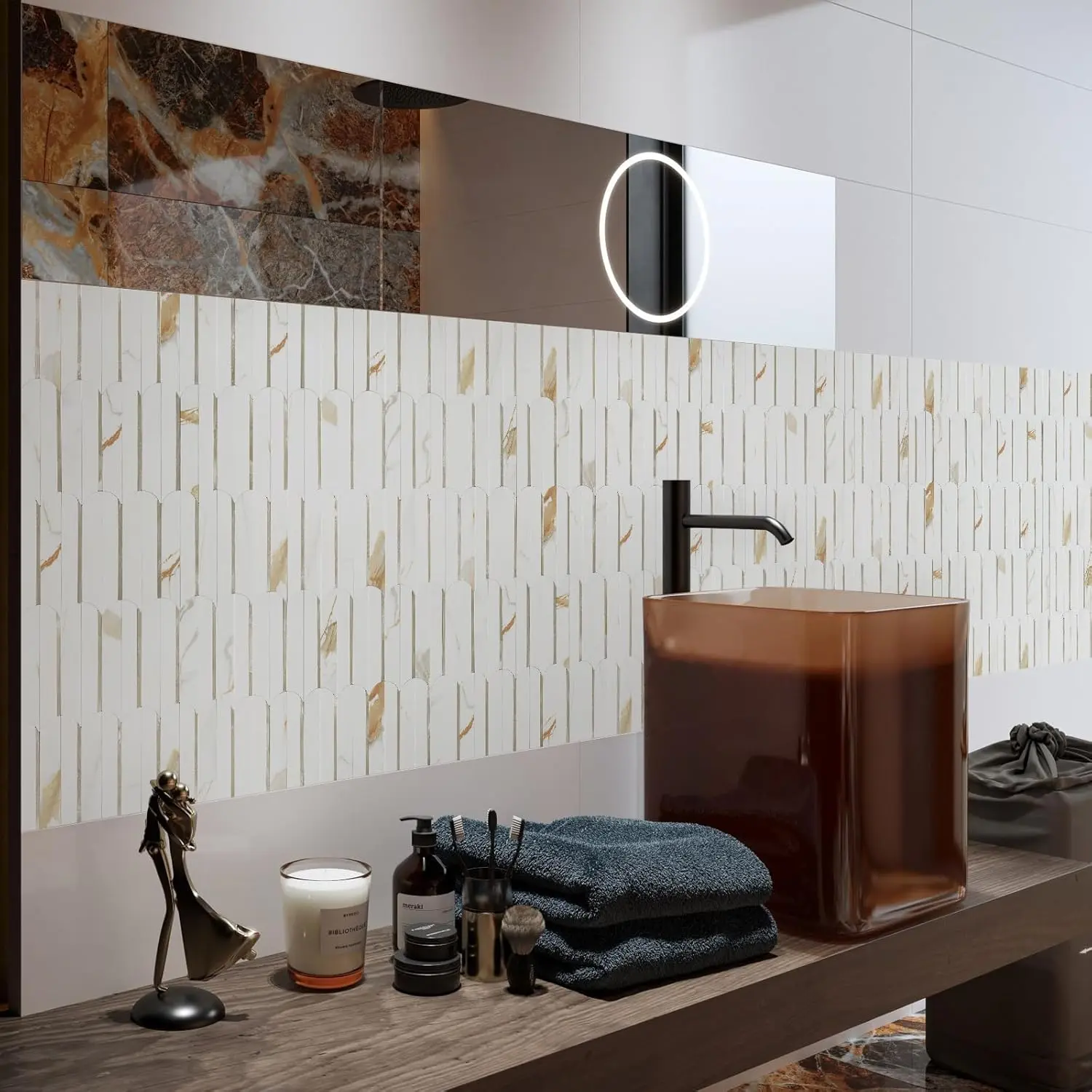 ·Premium Materials:Made of PVC composite laminate, anti-scratch, high impact, color fadeless, more durable and stronger than other plastic self-adhesive tiles. Realistic marble texture and Long Oval Geometric design, which can be installed in Vertical or Horizontal styles, and match with most of the countertop.