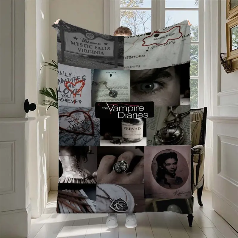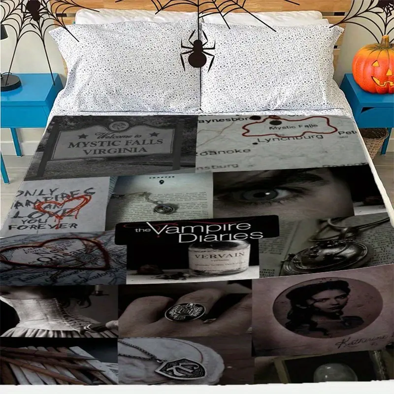 The Vampire Diaries themed printed flannel blanket, soft, comfortable and durable, suitable for sofa, bedroom, office, ideal gift